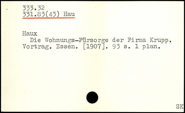 Die Wohnungs-Fürsorge der Firma Krupp. Vortrag. Essen. [1907J.