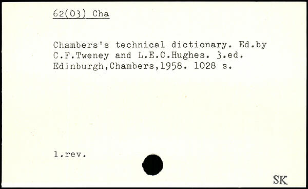 Chambers’s technical dictionary. Ed.by C.F.Tweney and L.E.C.Hughes.