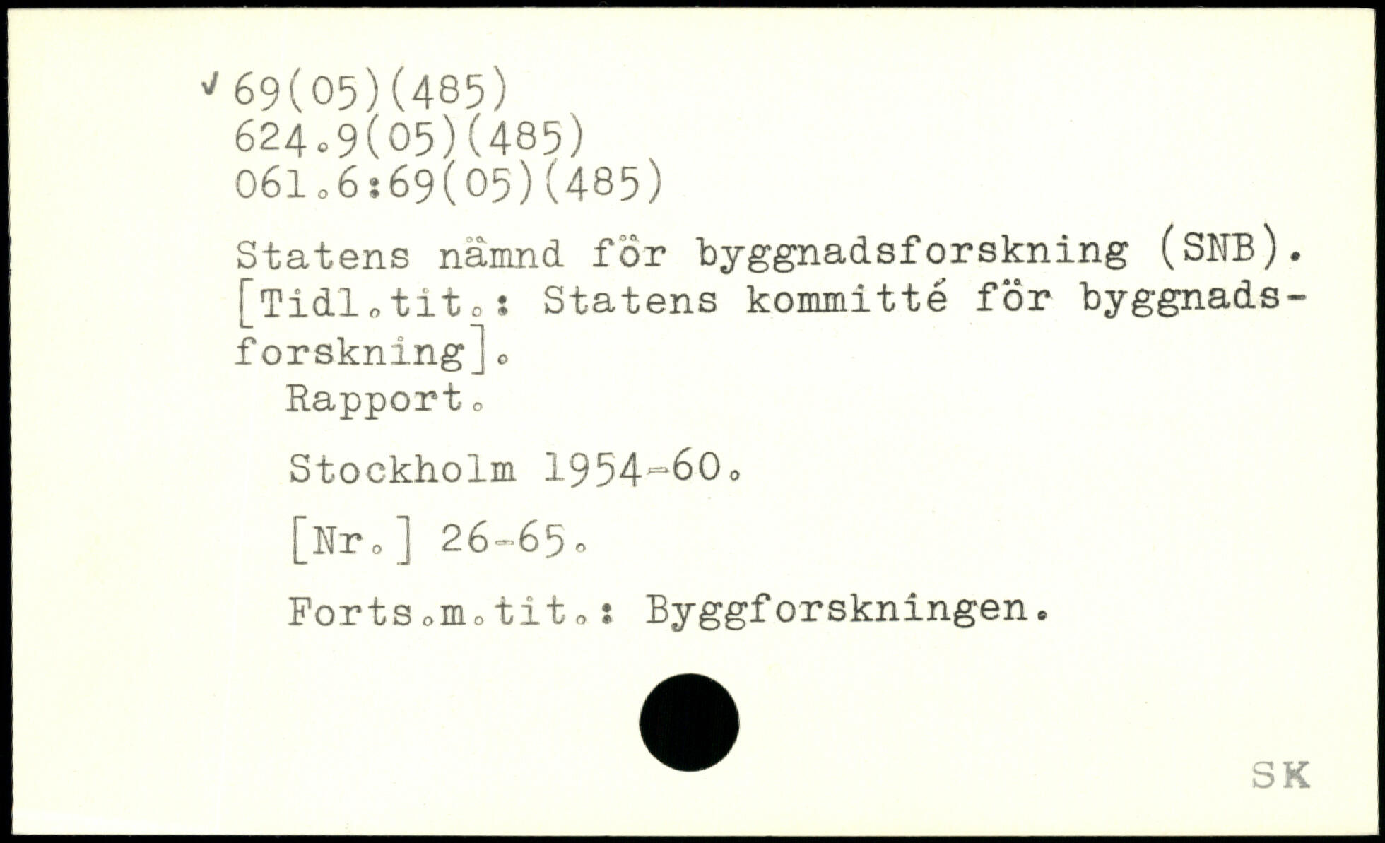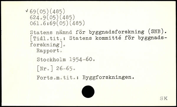 Statens nämnd, för byggnadsforskning (SNB). [Tidl,tit o: Statens kommitté för byggnadsforskning] o Rapport o