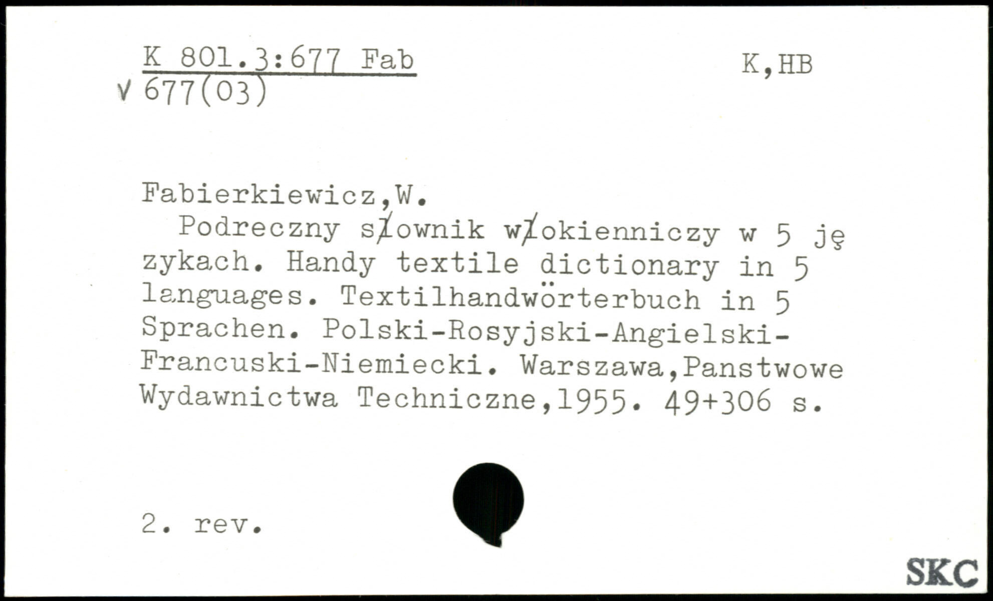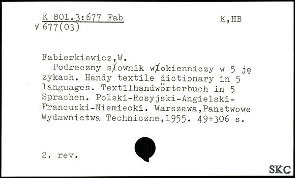 Podreczny s^ownik w^okienniczy w 5 zykach. Handy textile dictionary in 5 languages. Textilhandwörterbuch in