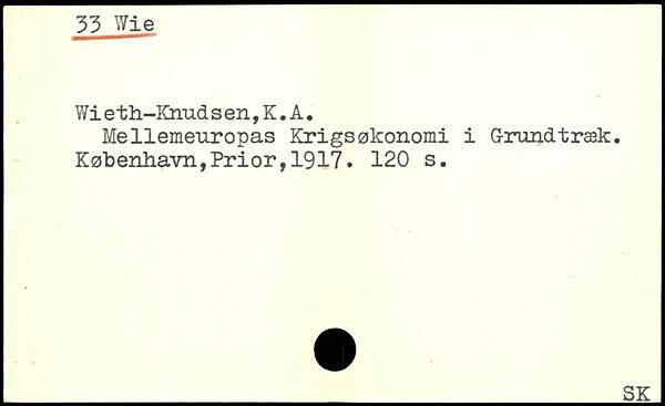 Wi eth-Knud s en, K. A. Mellemeuropas Krigs økonomi i G-rundtræk.