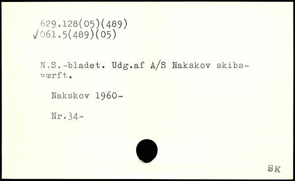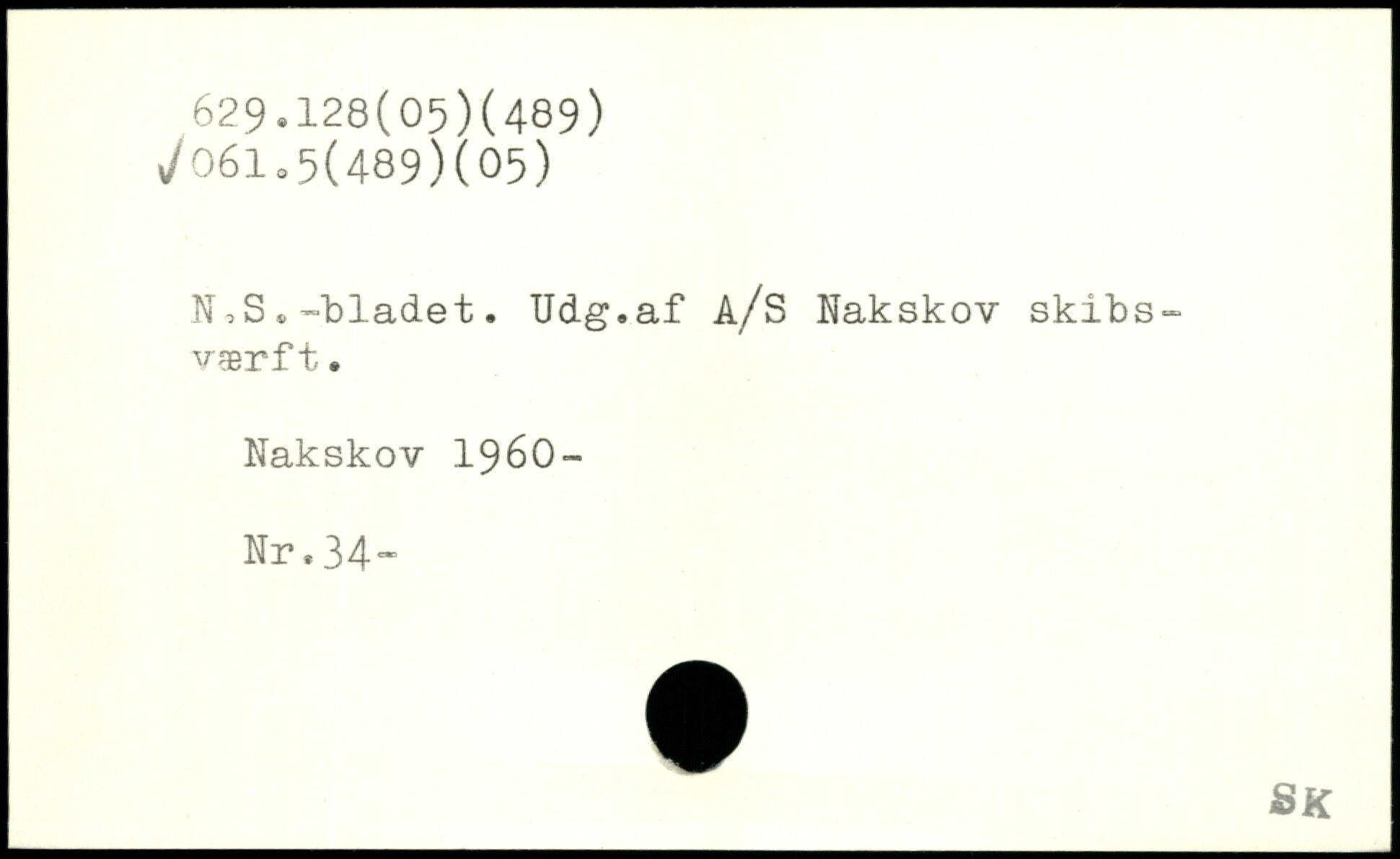 N,S.-bladet. Udg.af A/S Nakskov skibsværft. Nakskov 1960-Nr.34”