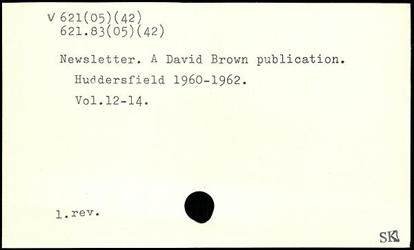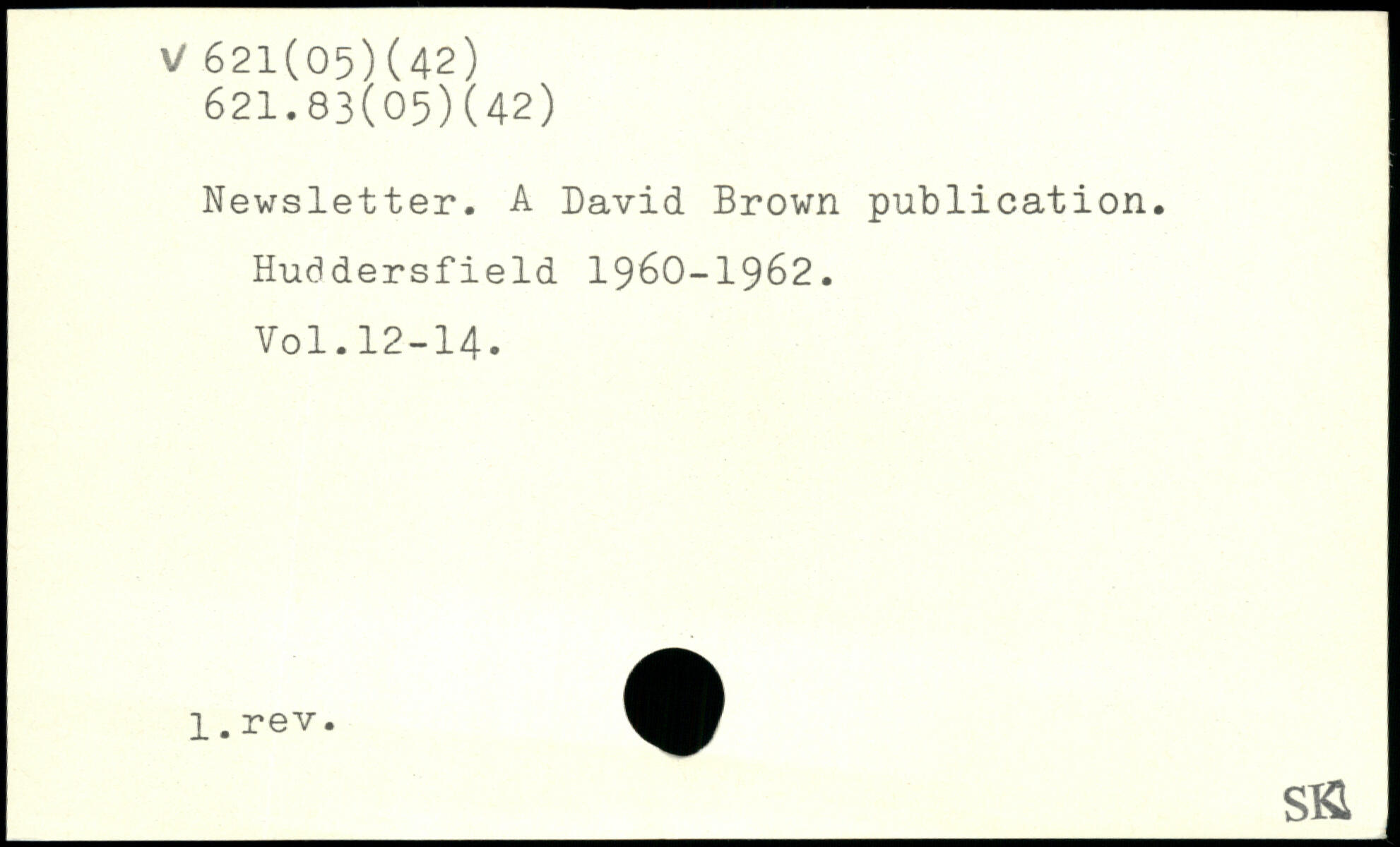 Newsletter. A David Brown publication. Huddersfield 1960-1962. Vol.I2-I4. _sa