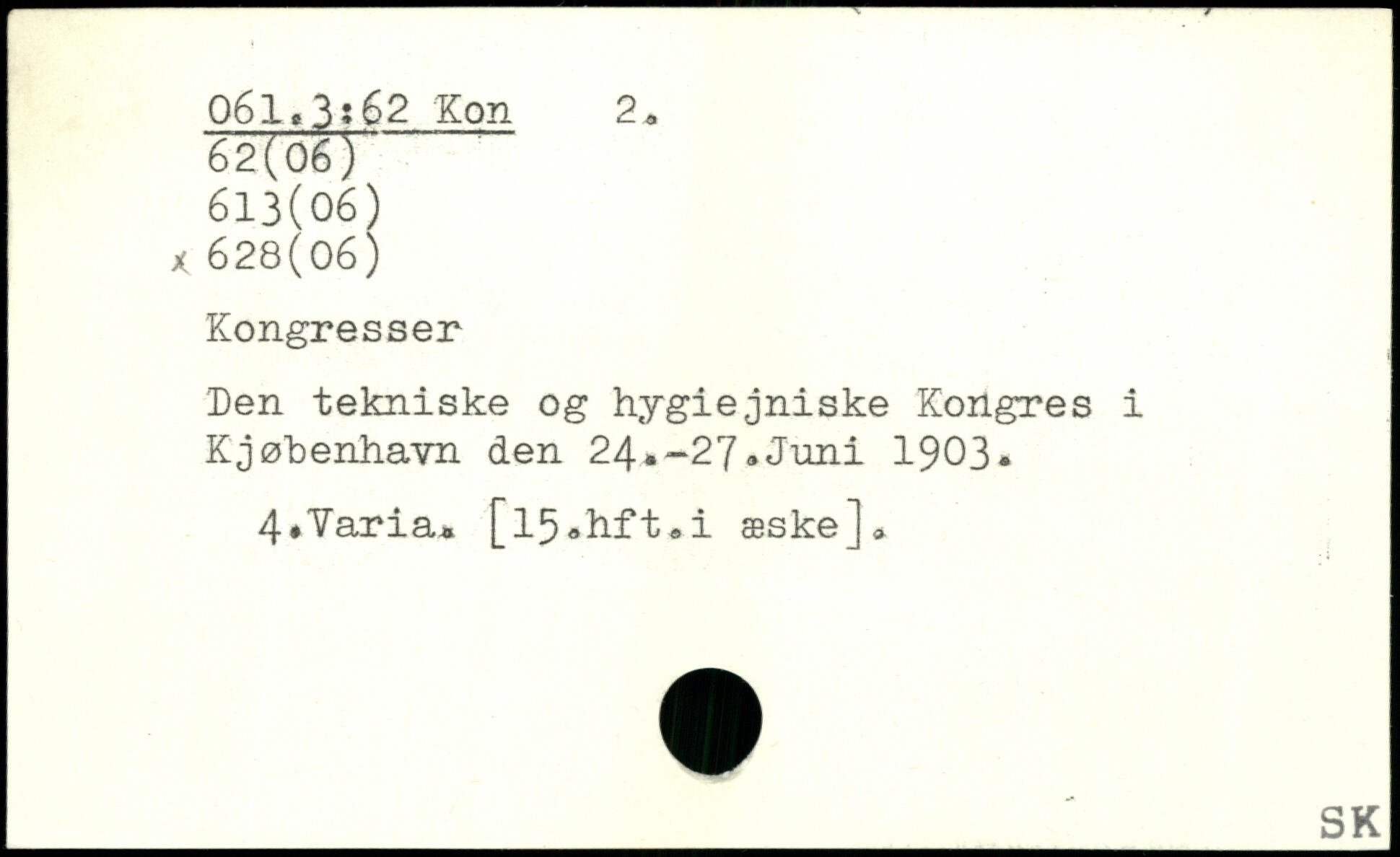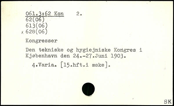Den tekniske og hygiejniske Kongres i Kjøbenhavn den 24.-27.Juni 1903. 4#’Varia. [l5.hft.i æske]