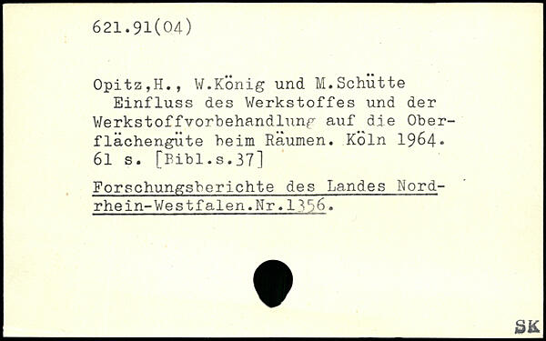 Opitz,H. , W.König und M.Schutte Einfluss des Werkstoffes und der Werkstoffvorbehandlung auf die Oberflächengüte beim Räumen.