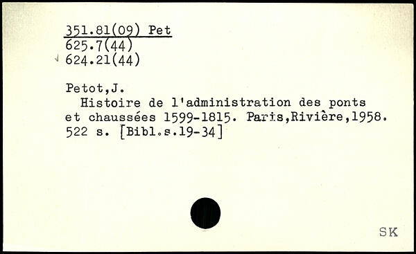 Histoire de l'administration des ponts et chaussées 1599-1815. Paris,Rivière,1958.