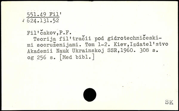 Fil1cakovjP.F. Teorija fil'tracii pod gidrotechniceski-mi sooruzenijami. Tom 1-2. Kiev,Izdatel.stvo Akademii Nauk Ukrainskoj SSR,1960.