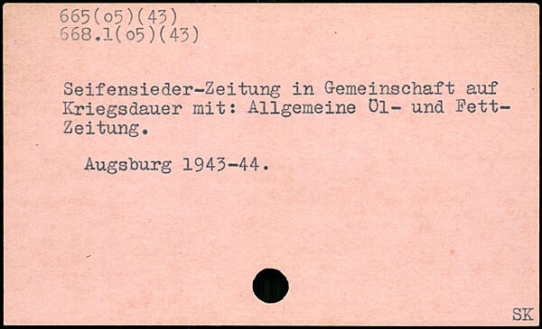 Seifensieder-Zeitung in Gemeinschaft auf Kriegsdauer mit: Allgemeine öl- und Fett-Zeitung. Augsburg 194-3-44.