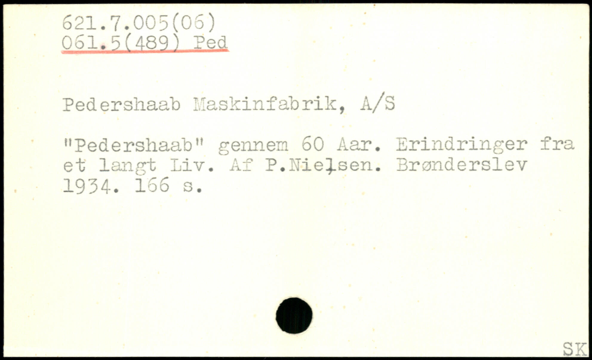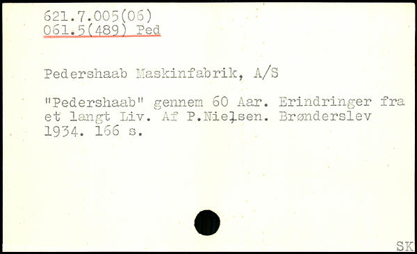 Pedershaab Maskinfabrik, A/S "Pedershaab" gennem 60 Aar. Erindringer fra et langt Liv. Af P.Nielsen. Brønderslev 1934.