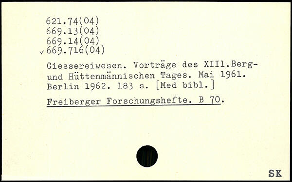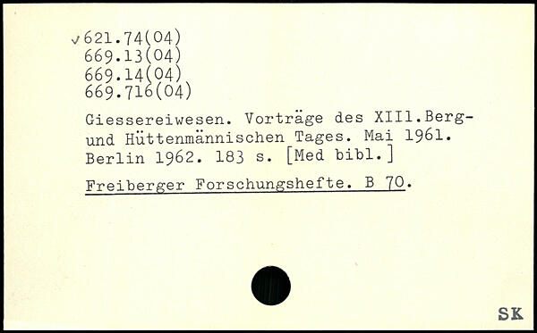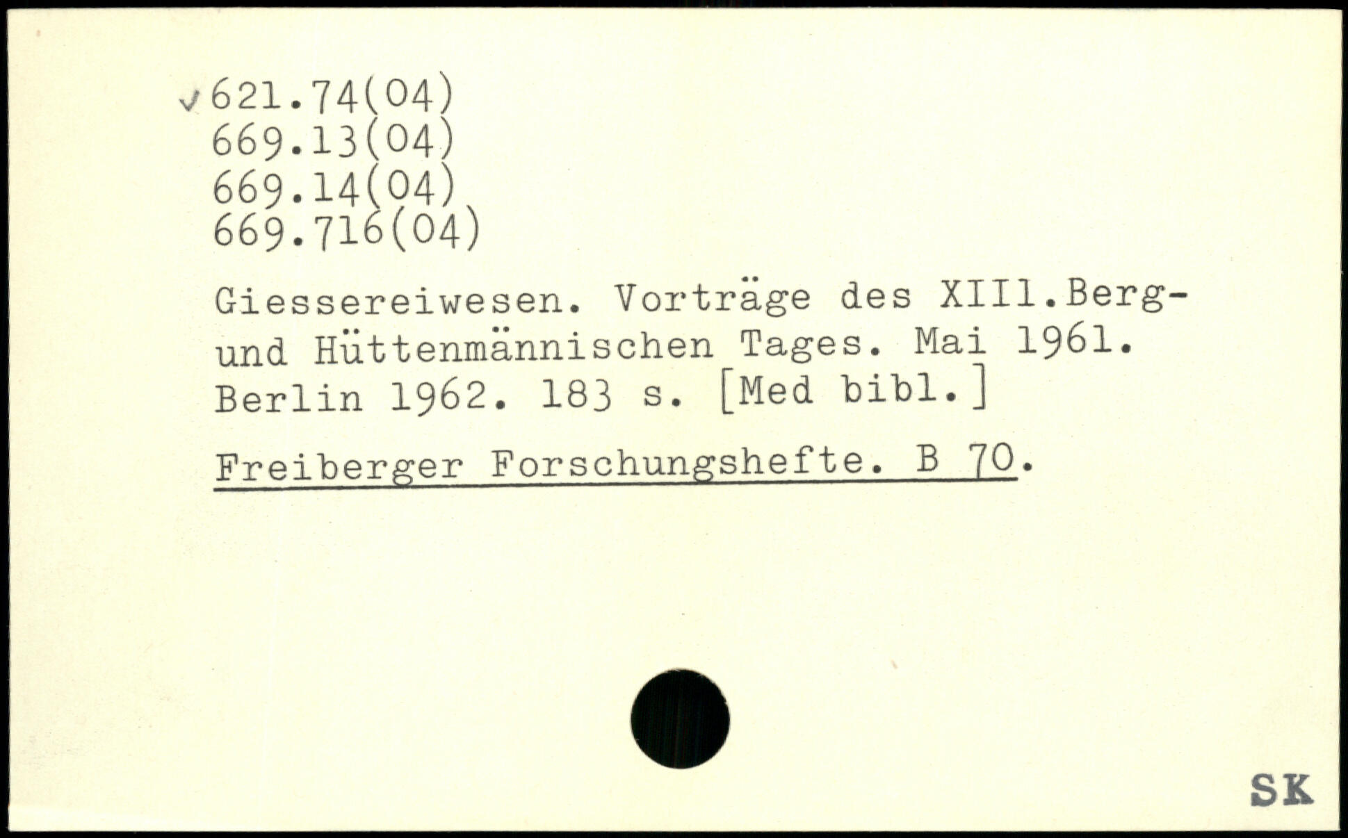 Giessereiwesen. Vortrage des XXII.Berg-und Hüttenmännischen Tages. Mai 1961.