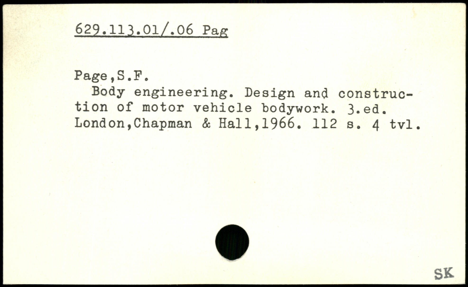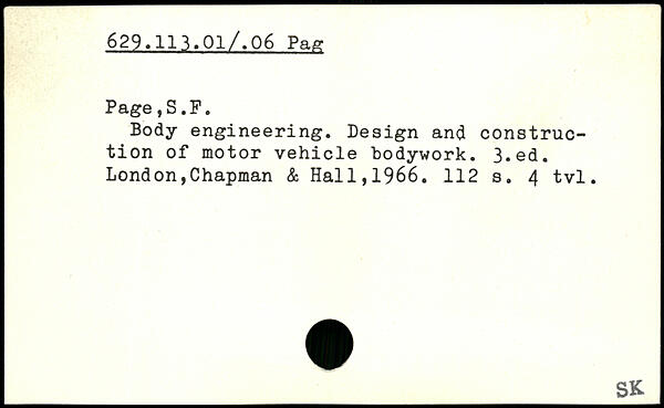 Body engineering. Design ancl construction of motor vehicle bodywork.