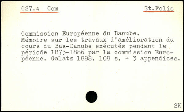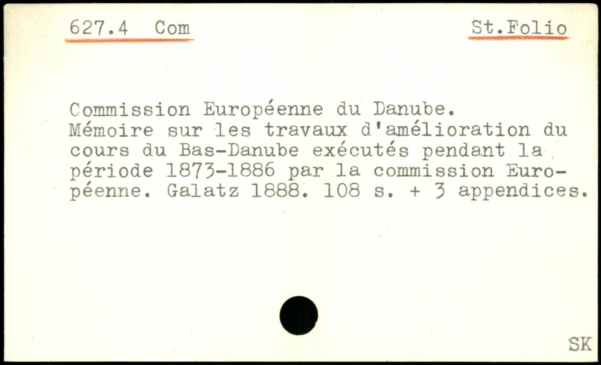 Commission Européenne du Danube. Mémoire sur les travaux d'amélioration du cours du Bas-Danube exécutés pendant la période 1873-1886 par la commission Européenne. Galatz 1888.