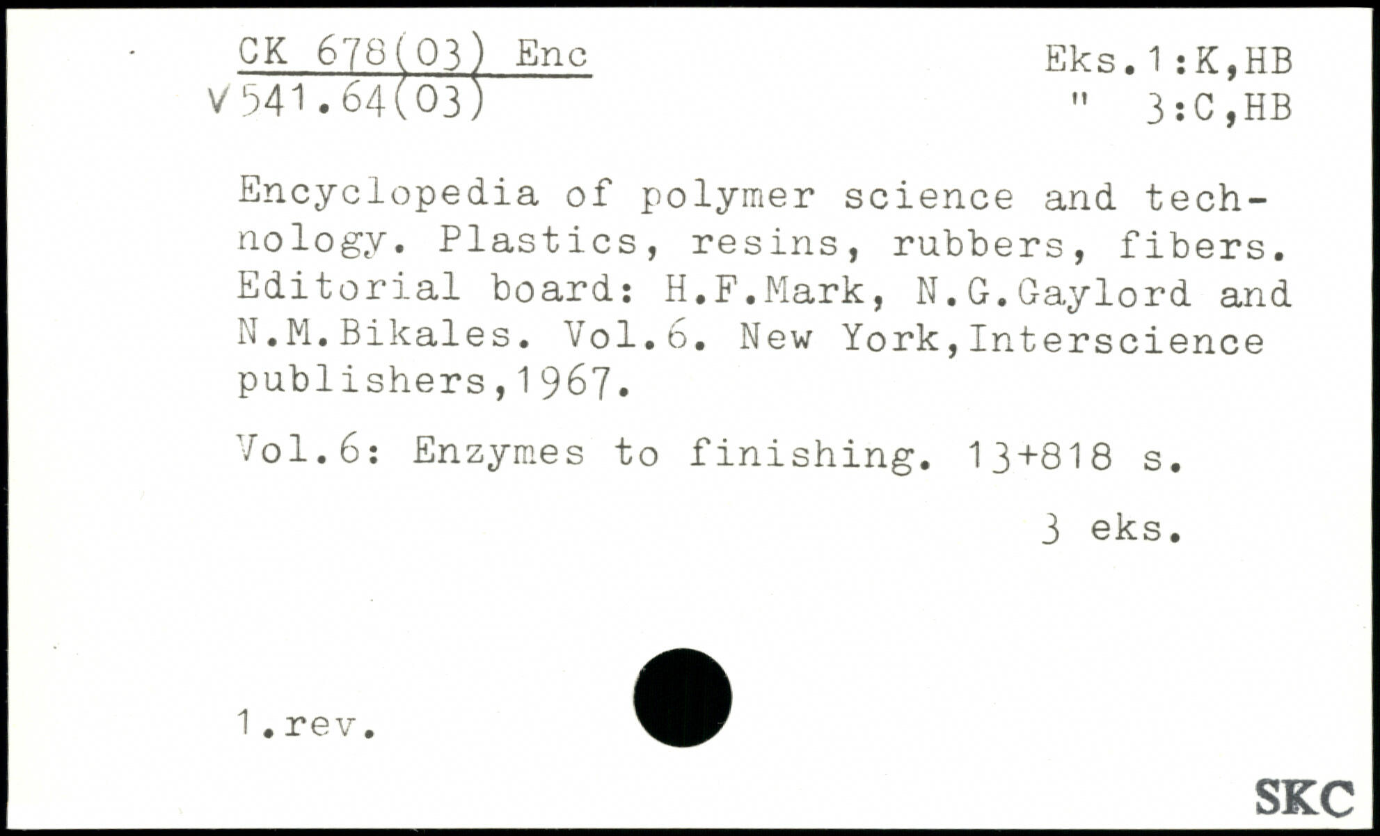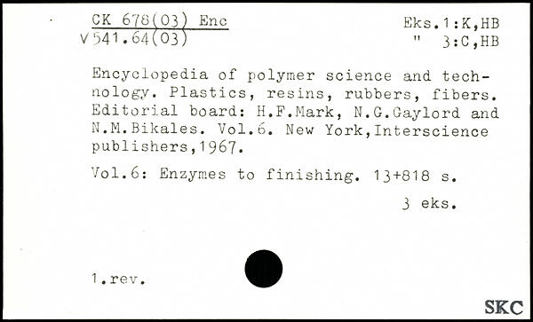 Encyclopedia of polymer science and technology. Plastics, resins, rubbers, fibers. Editorial board: H.F.Mark, N.G.Gaylord and G.M.Bikales.