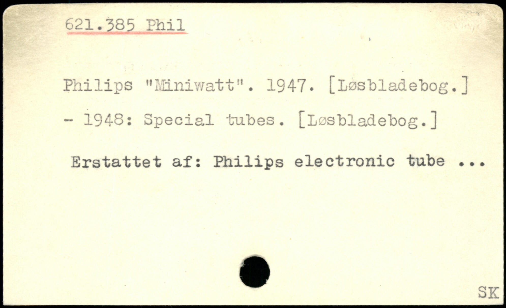 Philips "MiniwattM. 1947. [Losbladebog.] - 1948: Special tubes, [icsbladebog.] Erstattet af: Philips electronic tube ... ___SK