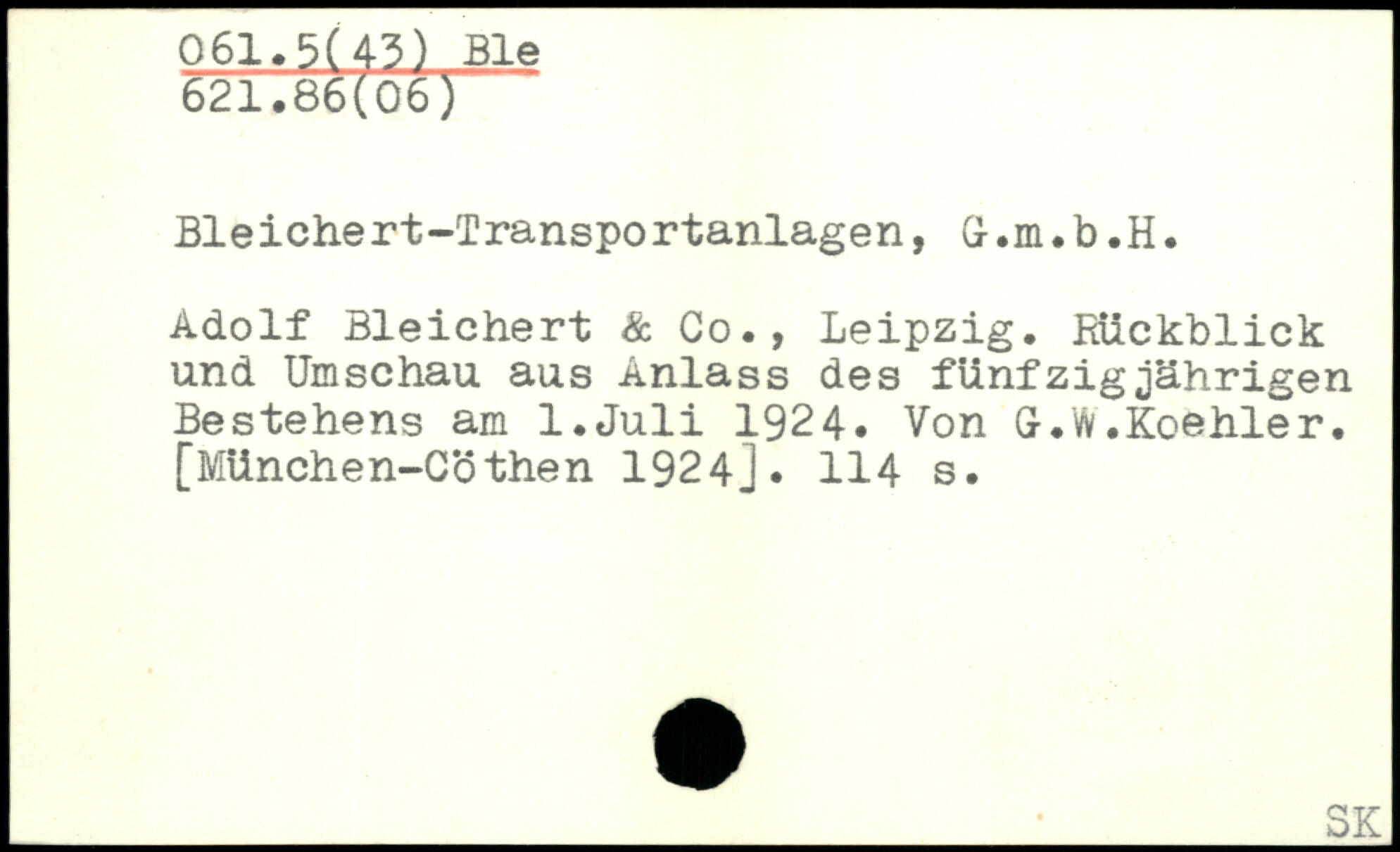 Bleichert-fransportanlagen, C.m.b.H. Adolf Bleichert & Co., Leipzig. Rückblick und Umschau aus Anlass des fünfzigjährigen Bestehens am l.Juli 1924. Von C.vv.Koehler.