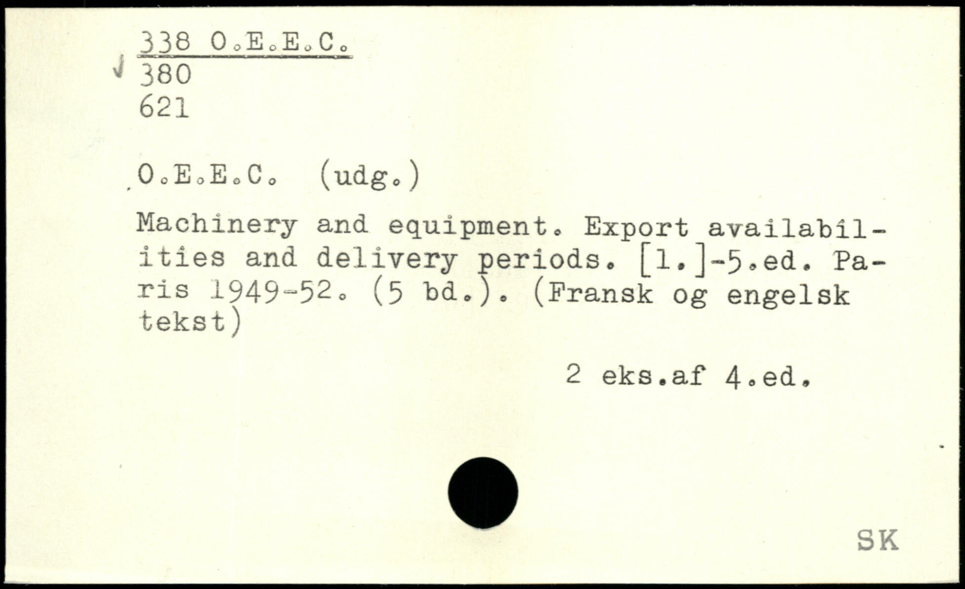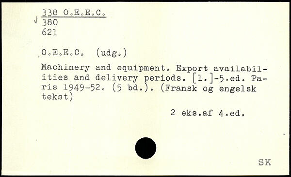 Machinery and equipment, Export availabilities and delivery periods. [l.]~