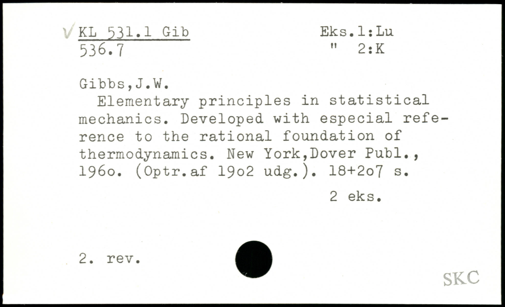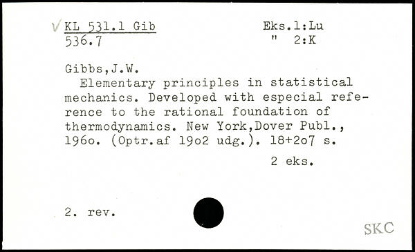 Elementary principles in statistical mechanics. Developed with especial reference to the rational foundation of thermodynamics.