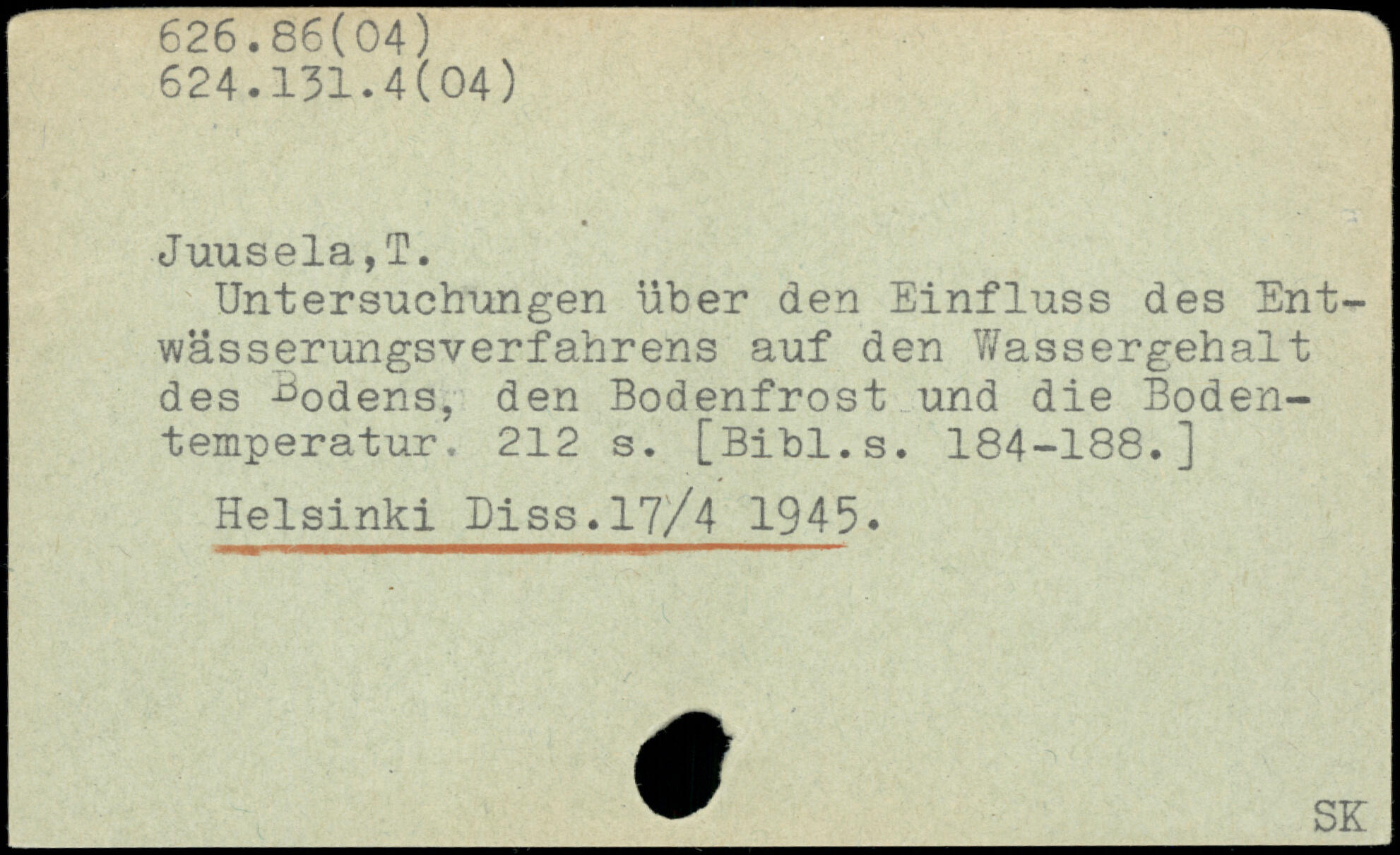 Untersuchungen über den Einfluss des Entwässerungsverfahrens auf den Wassergehalt des ^odens, den Bodenfrost und die Bodentemperatur.