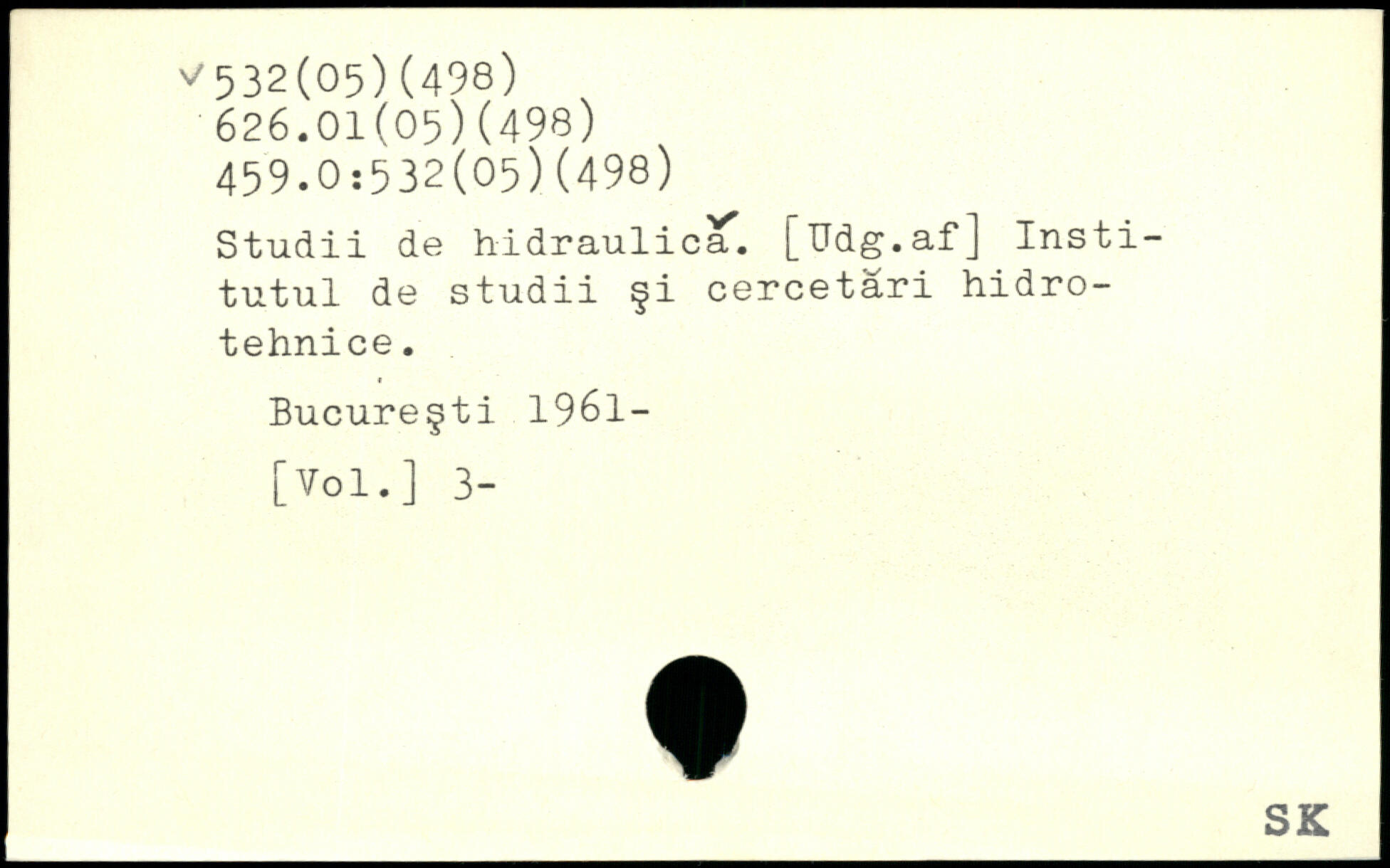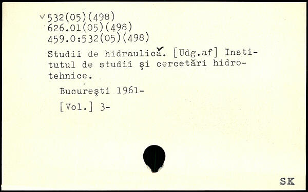 Studii de hidraulicsf. [üdg.af] Insti-tutul de studii fi cercetäri hidro-tehnice. Bucure§ti 1961-