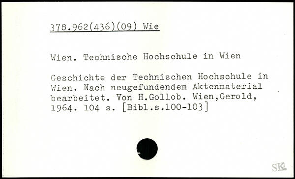 Wien. Technische Hochschule in Wien Geschichte der Technischen Hochschule in Wien. Nach neugefundendem Aktenmaterial bearbeitet. Von H.Gollob.