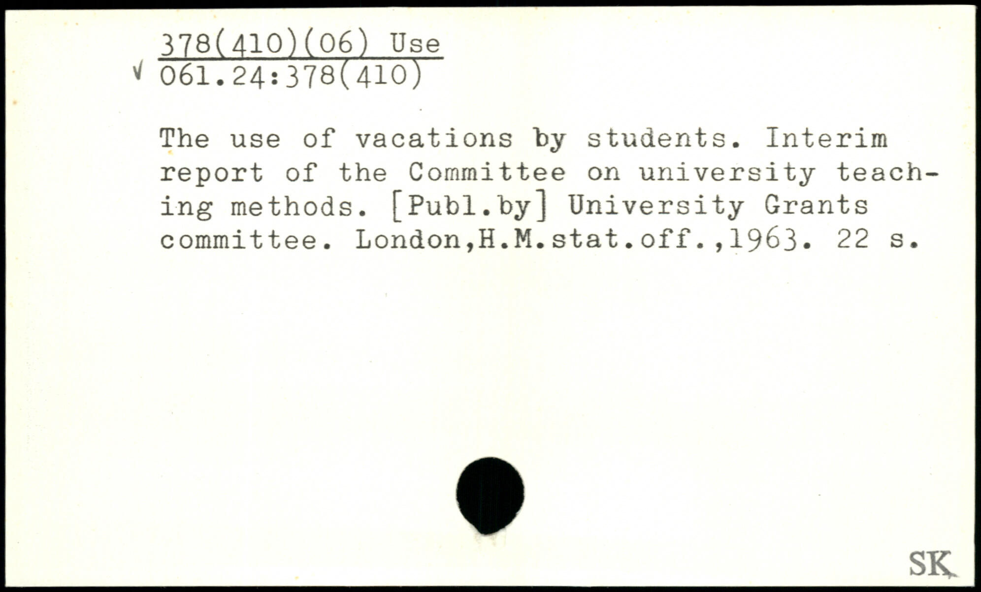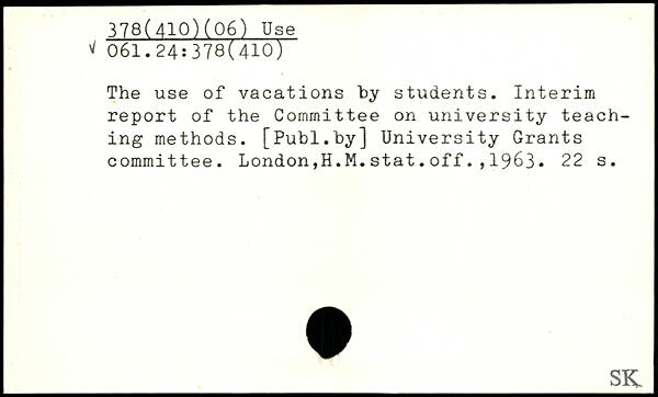 The use of vacations by students. Interim report of the Committee on university teaching methods.