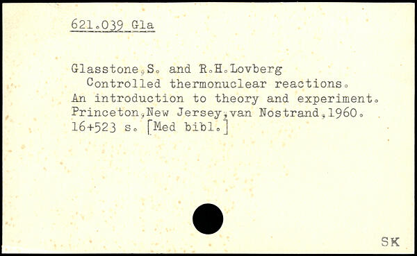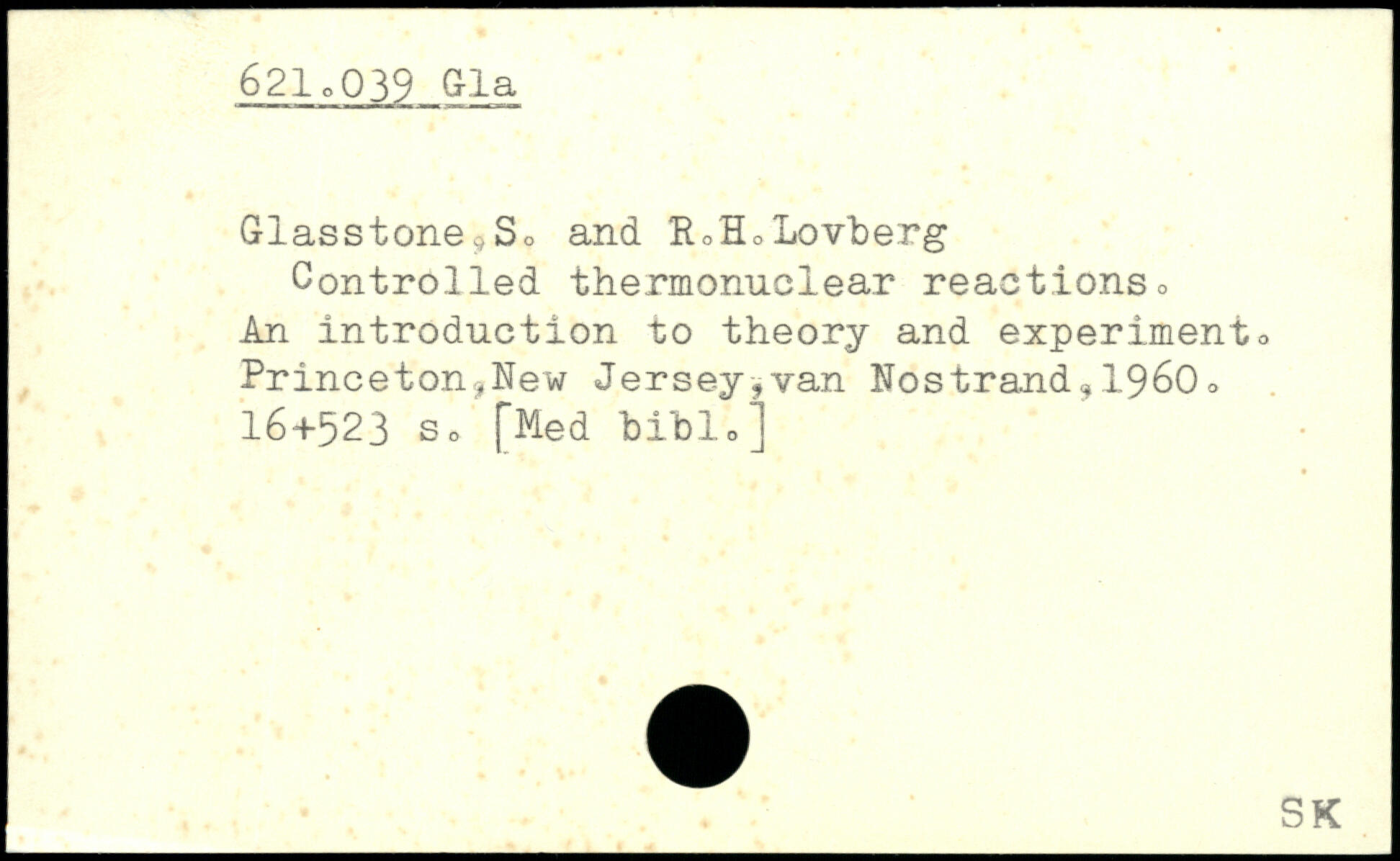 Controlled thermonuclear reactions. An introduction to theory and experimento Princeton,New Jersey ,van Nostrand,1960 a