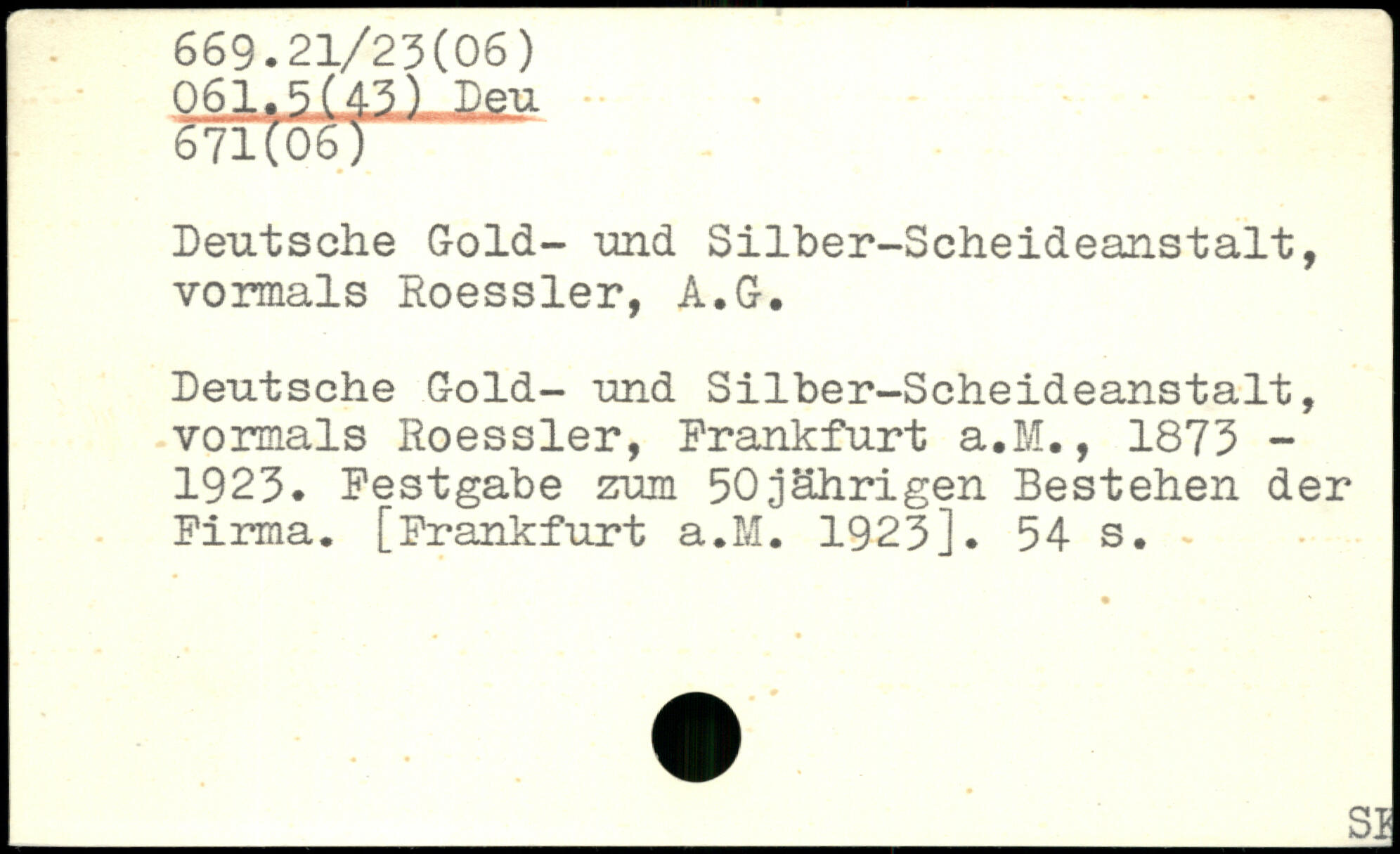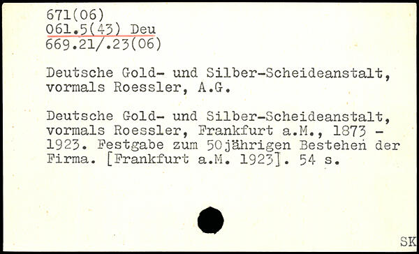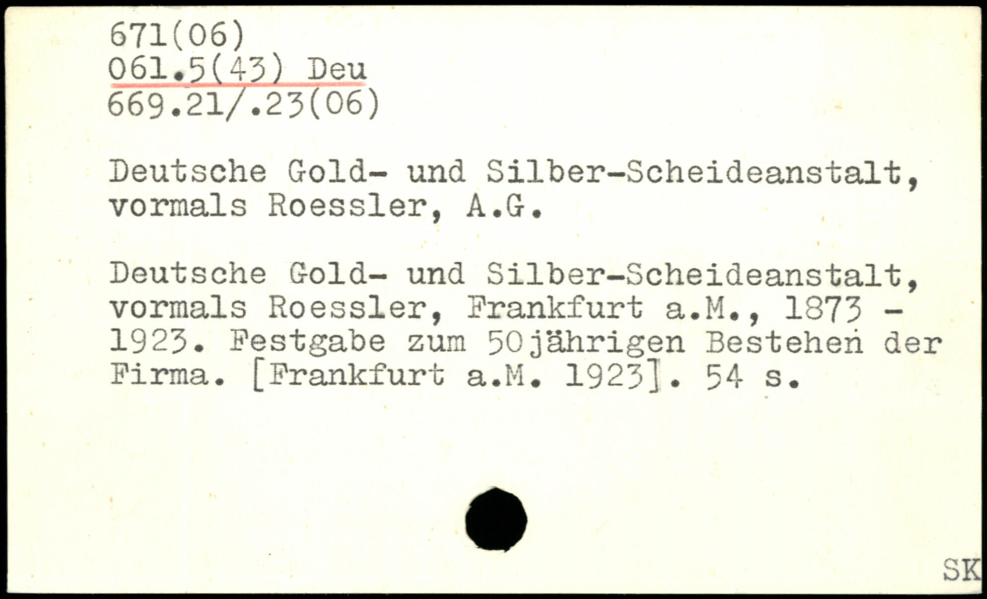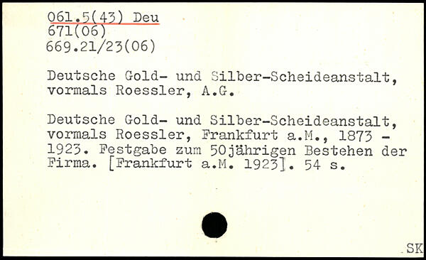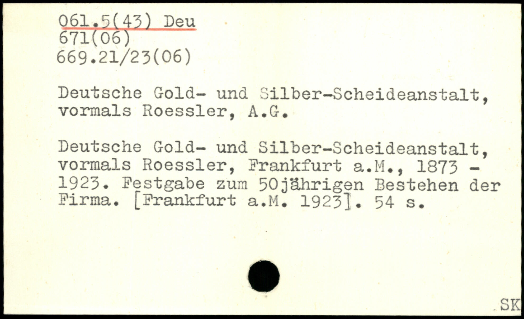 Deutsche Gold- und Silber-Scheideanstalt, vormals Roessler, A.G. Deutsche Gold- und Silber-Scheideanstalt, vormals Roessler, Frankfurt a.M., 1873 -1923. Festgabe zum 50j.ährigen Bestehen der Firma.