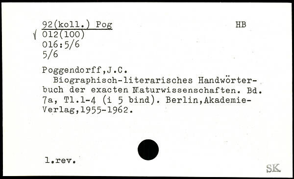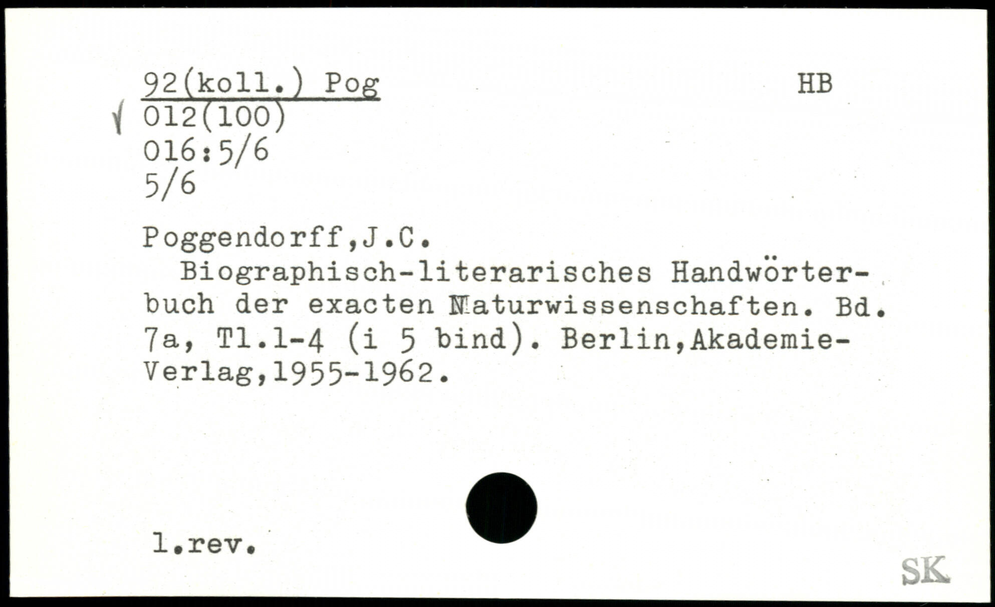 P oggendo rf f,J.C. Biographisch-literarisches Handwörterbuch der exacten F.aturwissenschaf ten. Bd. 7a, TI.1-4 (i 5 bind).