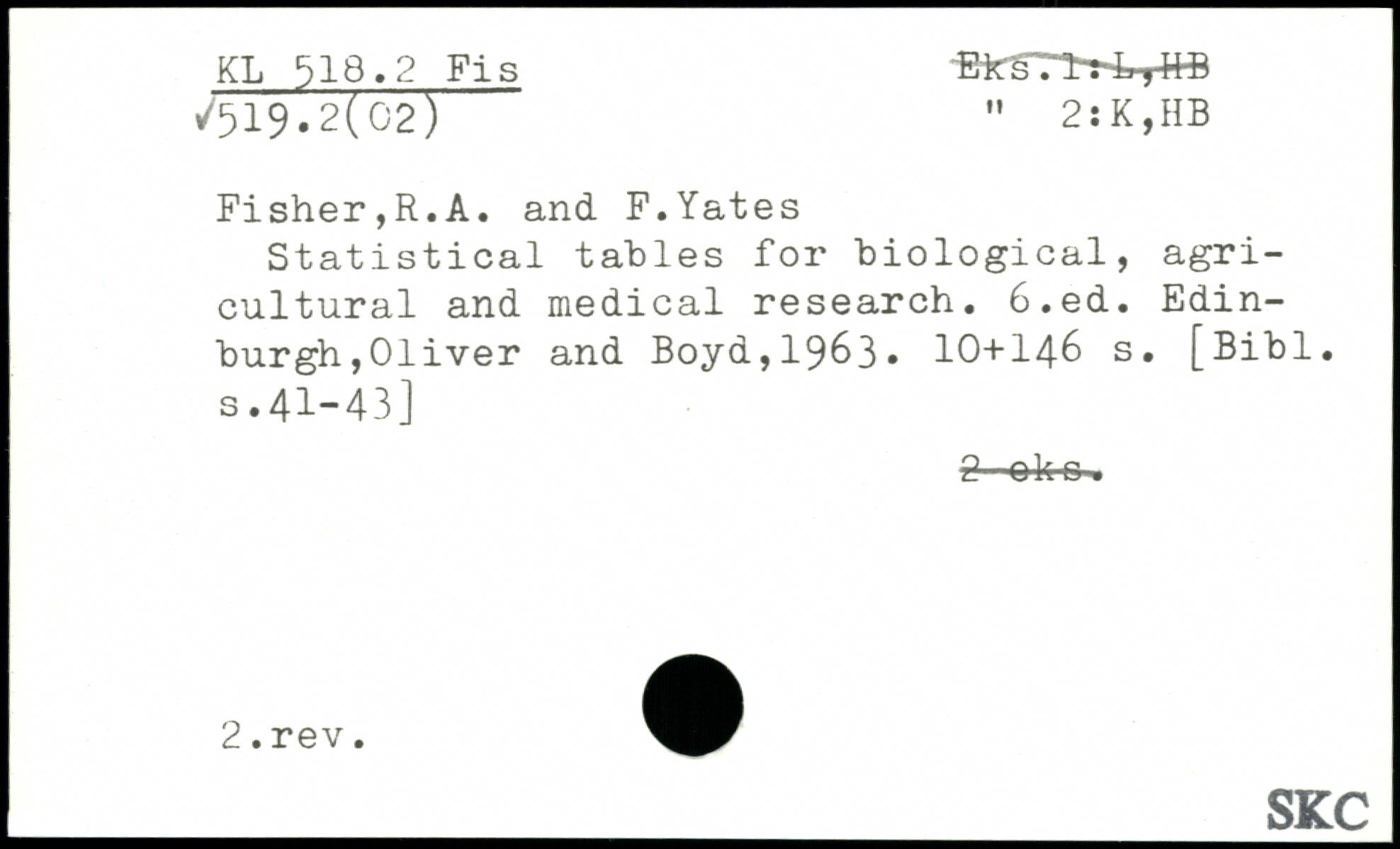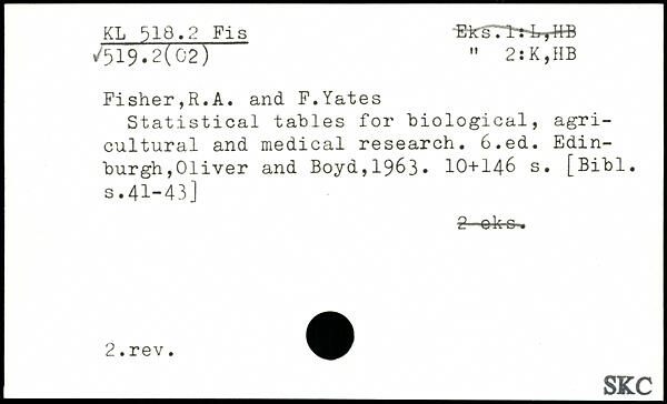 Forfatter: R.A. Fisher, F. Yates