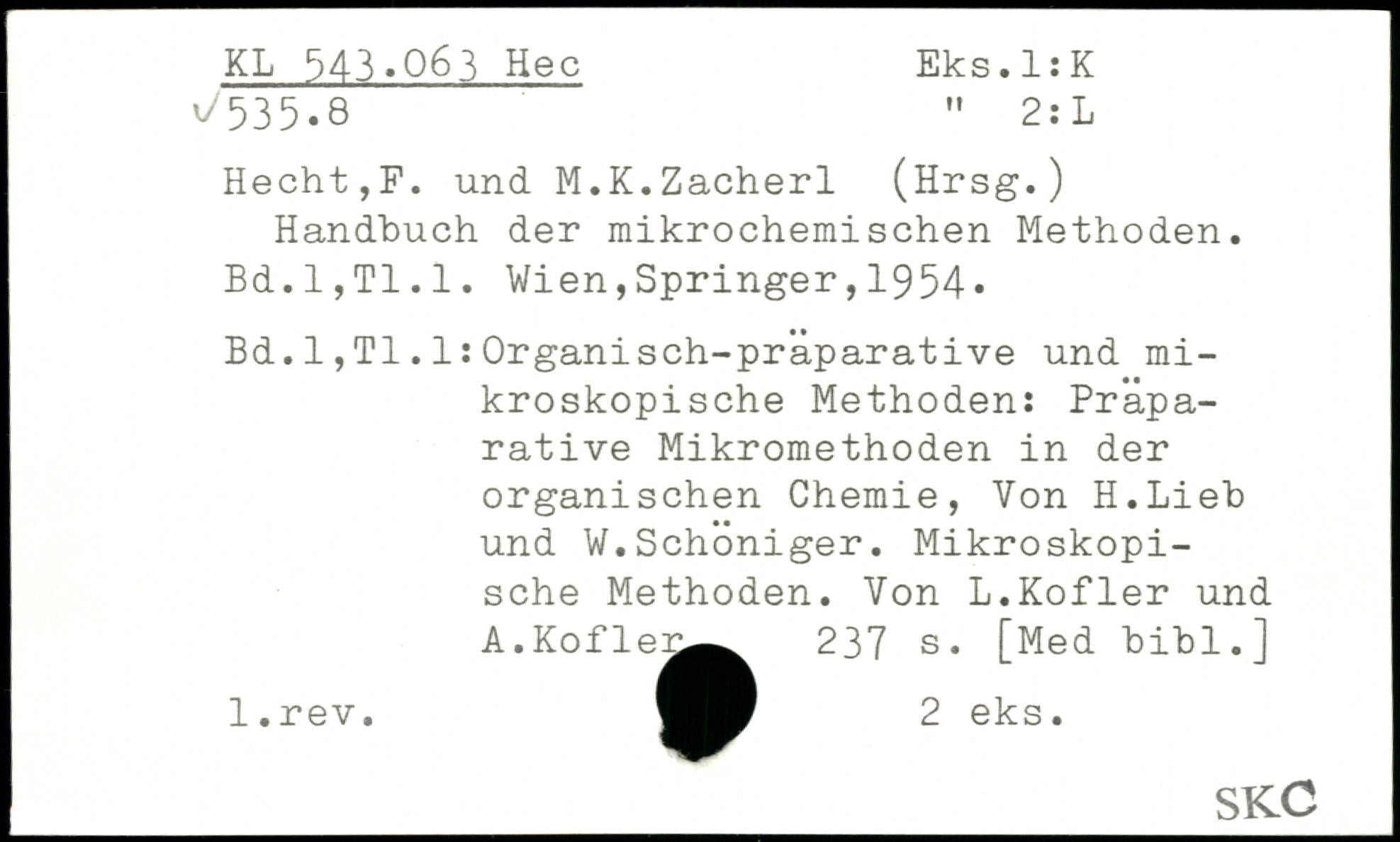 Handbuch der mikrochemischen Methoden. Bd.l,Tl.l.