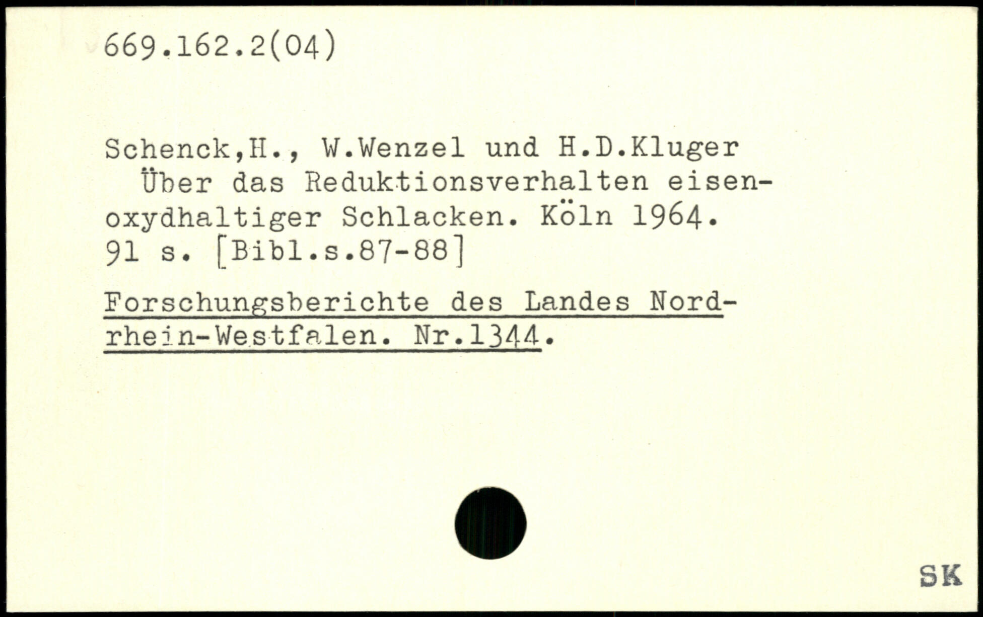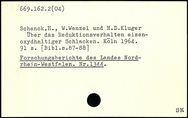 Schenck,H., W.Wenzel und H.D.Kluger Über das Reduktionsverhalten eisenoxydhaltiger Schlacken.