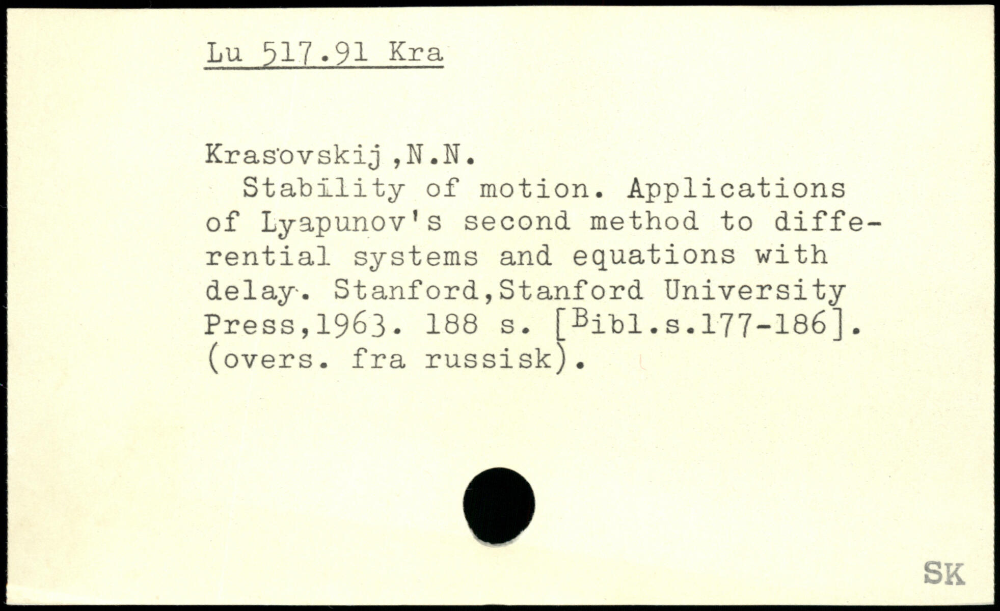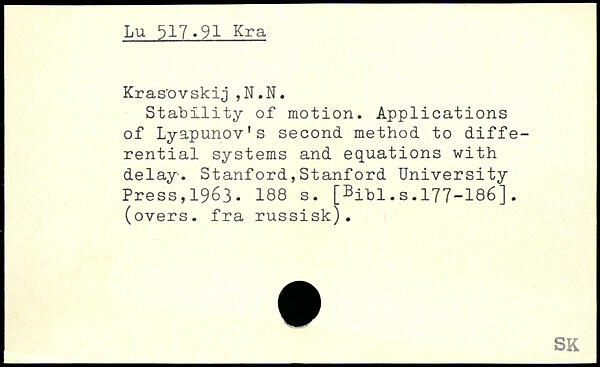 Stability of motion. Applications of Lyapunov's second method to differential systems and equations with delay.