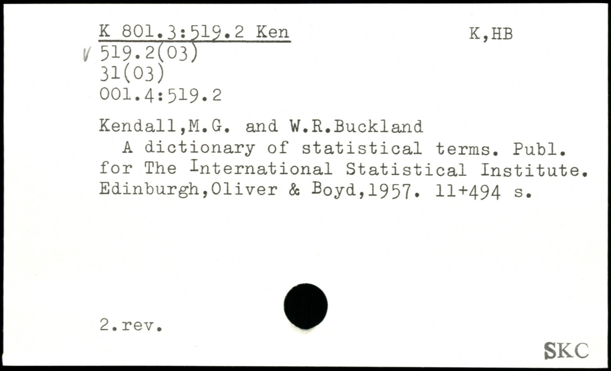 Forfatter: M.G. Kendall, W.R. Buckland