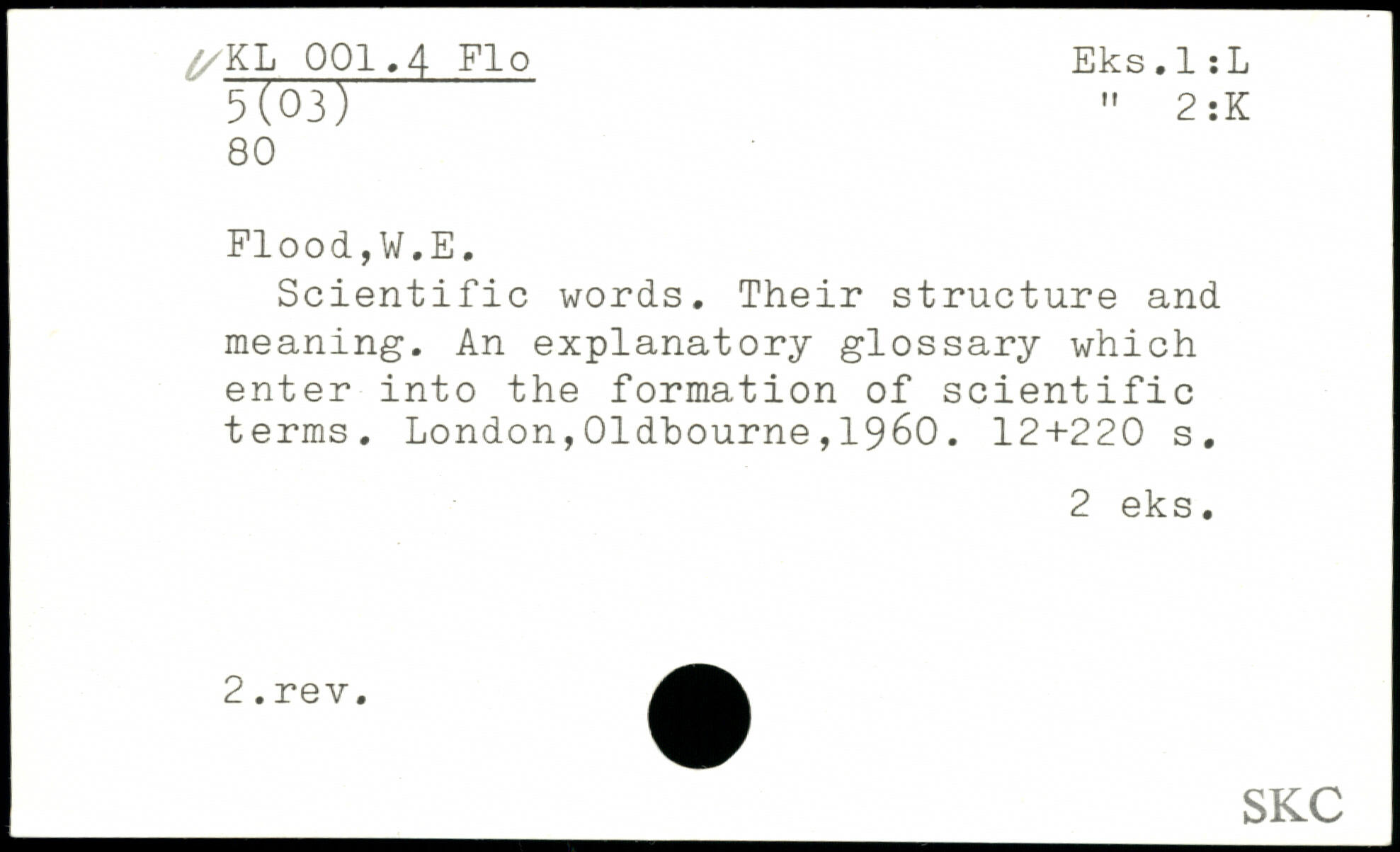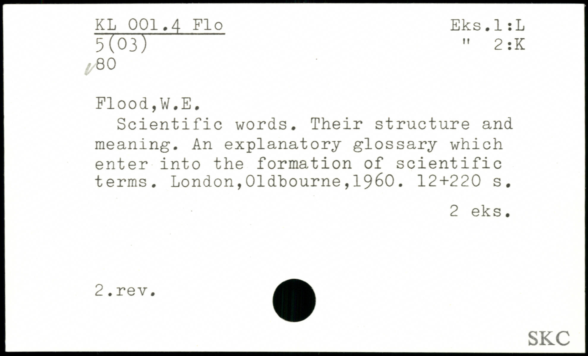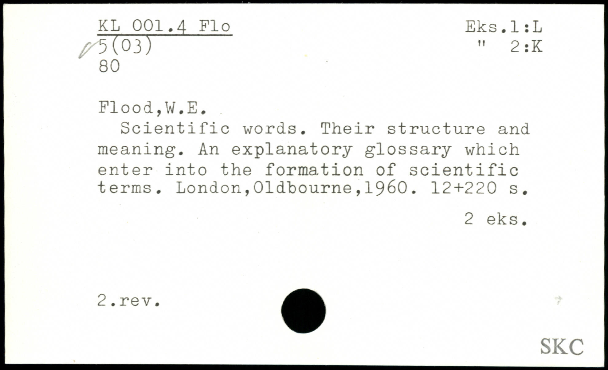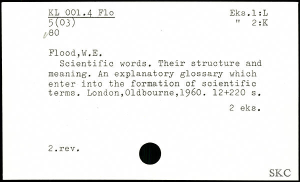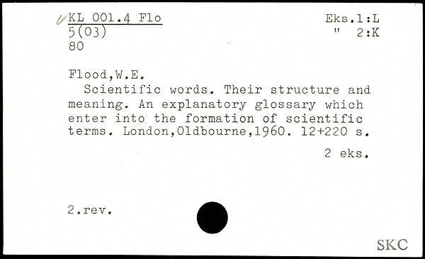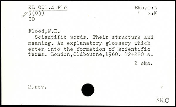Scientific words. Their structure and meaning. An explanatory glossary which enter into the formation of scientific terms.
