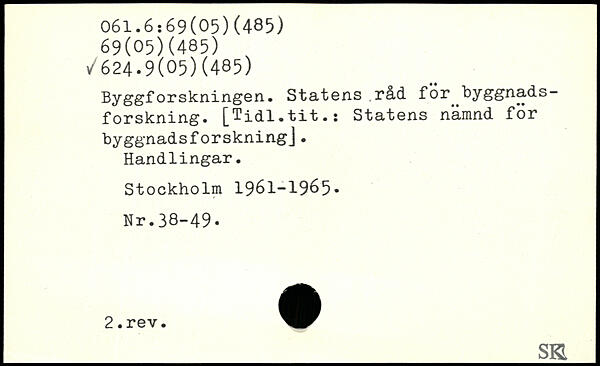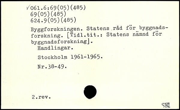 Byggforskningen. Statens ,råd. for byggnadsforskning. [Tidl.tit.: Statens nämnd for byggnadsforskning]. Handlingar.