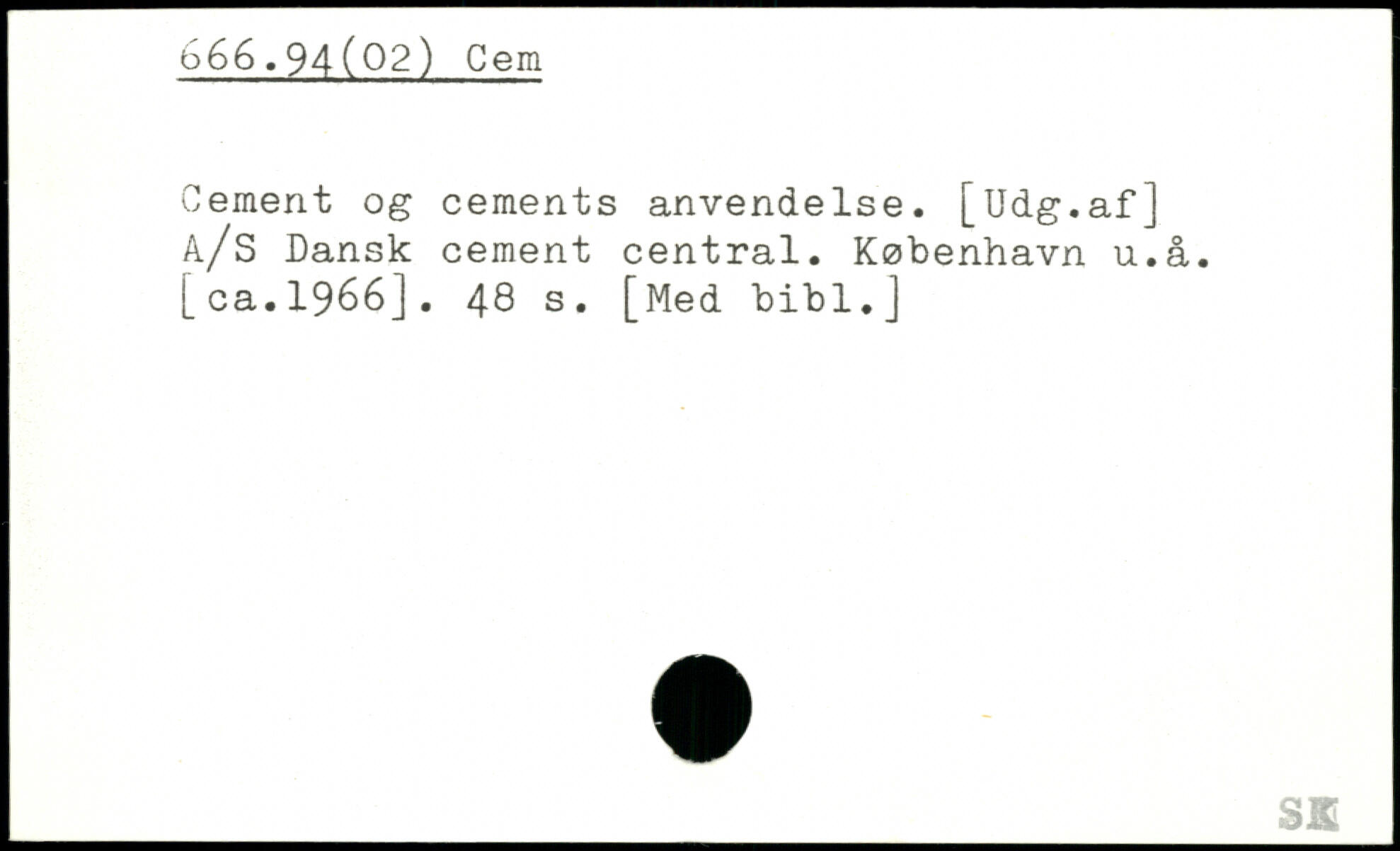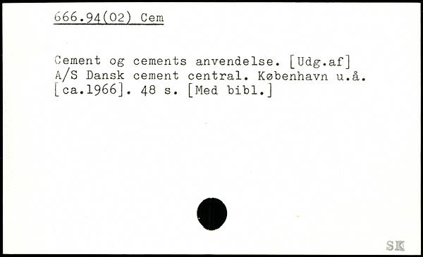 Gement og cements anvendelse. [Udg.af] A./S Dansk cement central. København u.å. [ca.1966].