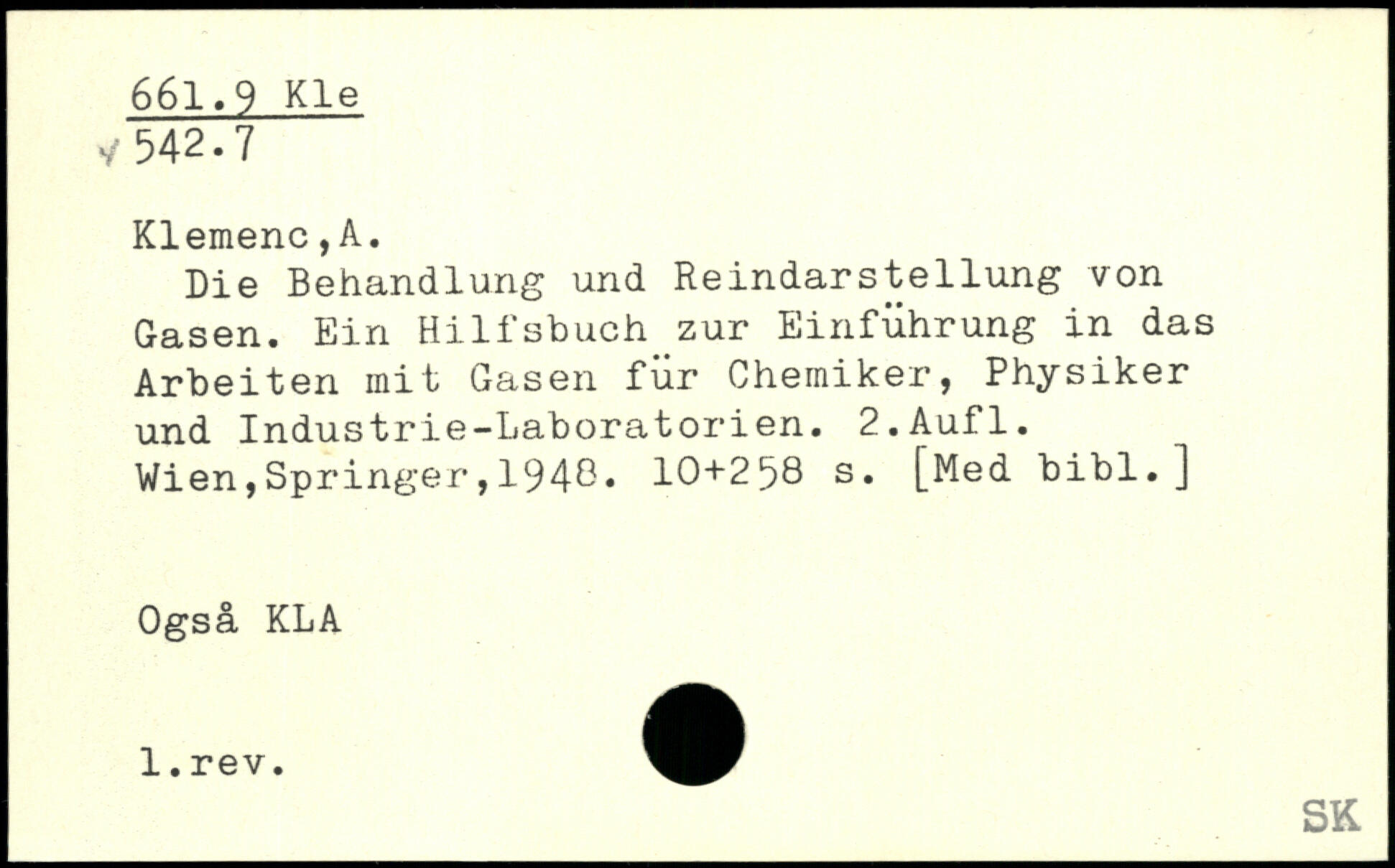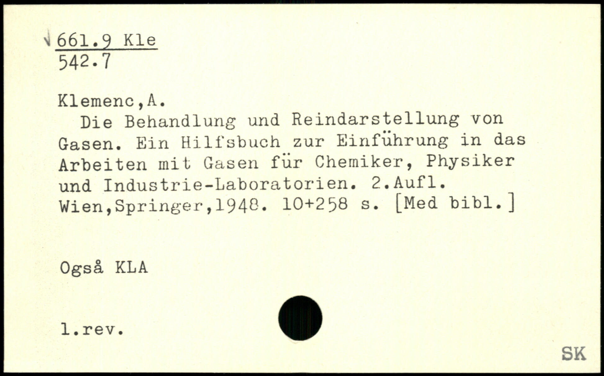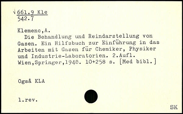 Die Behandlung und Reindarstellung von Gasen. Ein Hilfsbuch zur Einführung in das Arbeiten mit Gasen für Chemiker, Physiker und Industrie-Laboratorien.