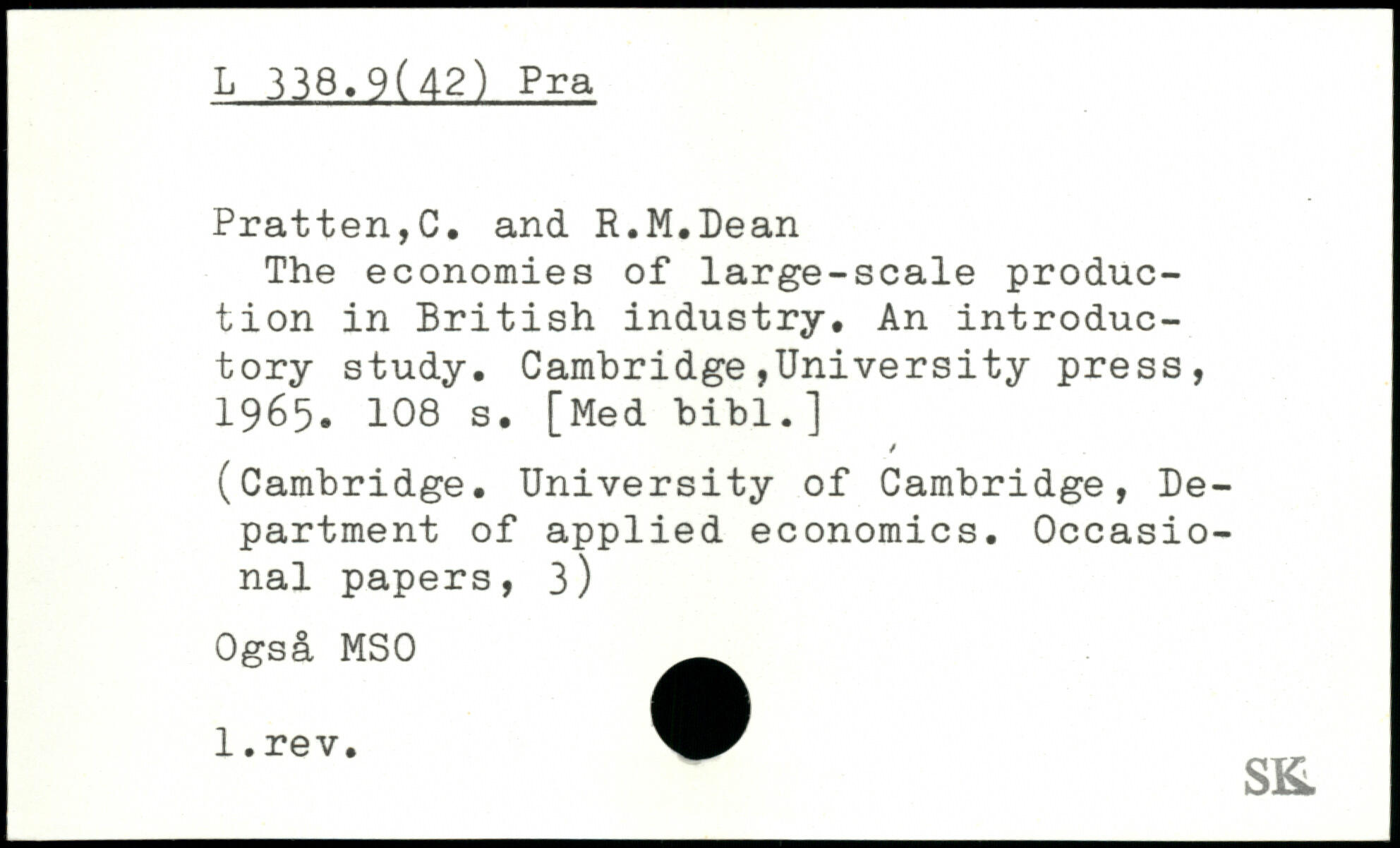 The economies of large-scale production in British industry. An introductory study.