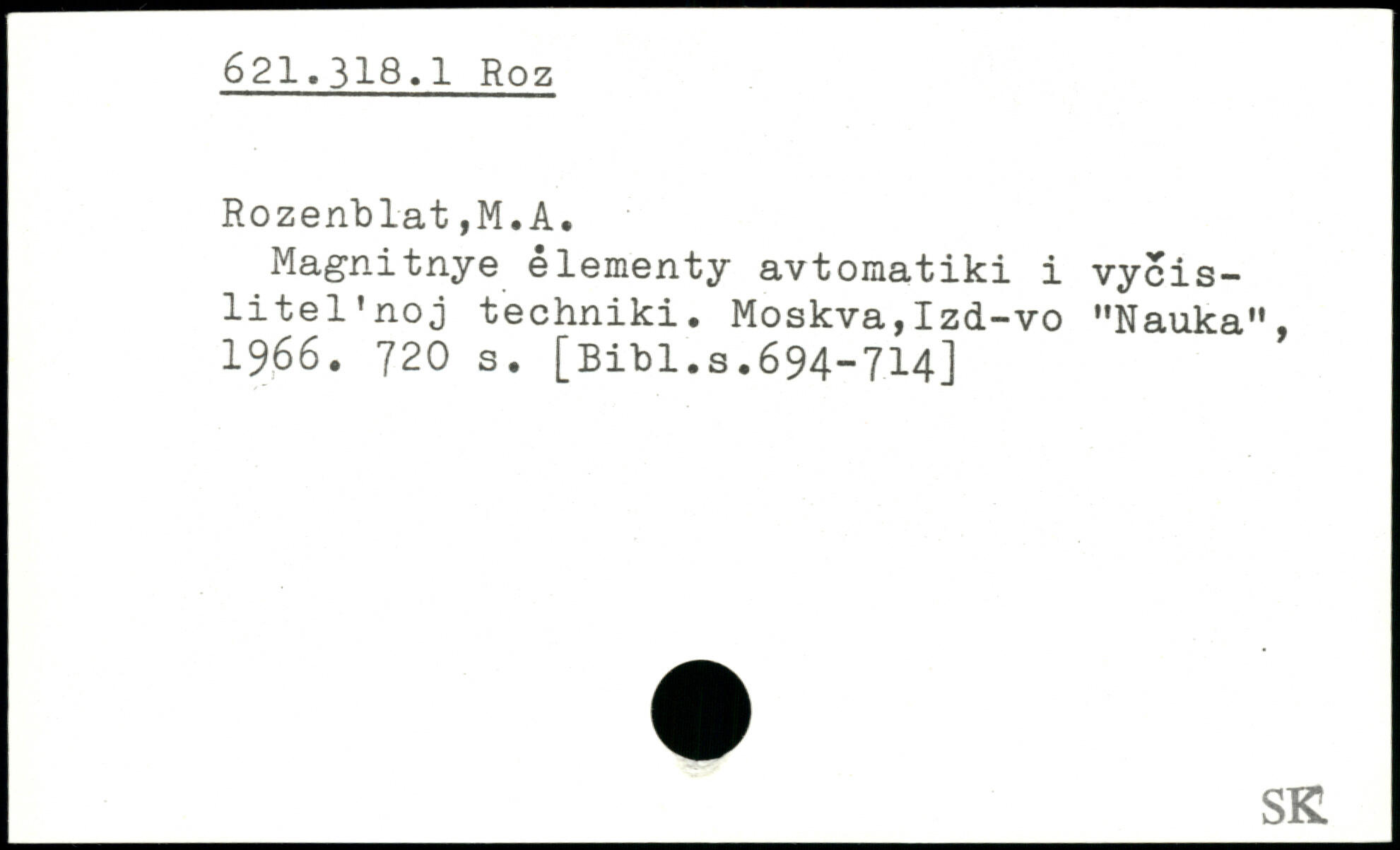 Magnitnye êlementy avtomatiki i vycis-litel'noj techniki. Moskva,Izd-vo "Nauka", 1966. 72O s.