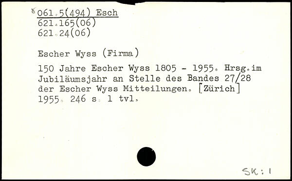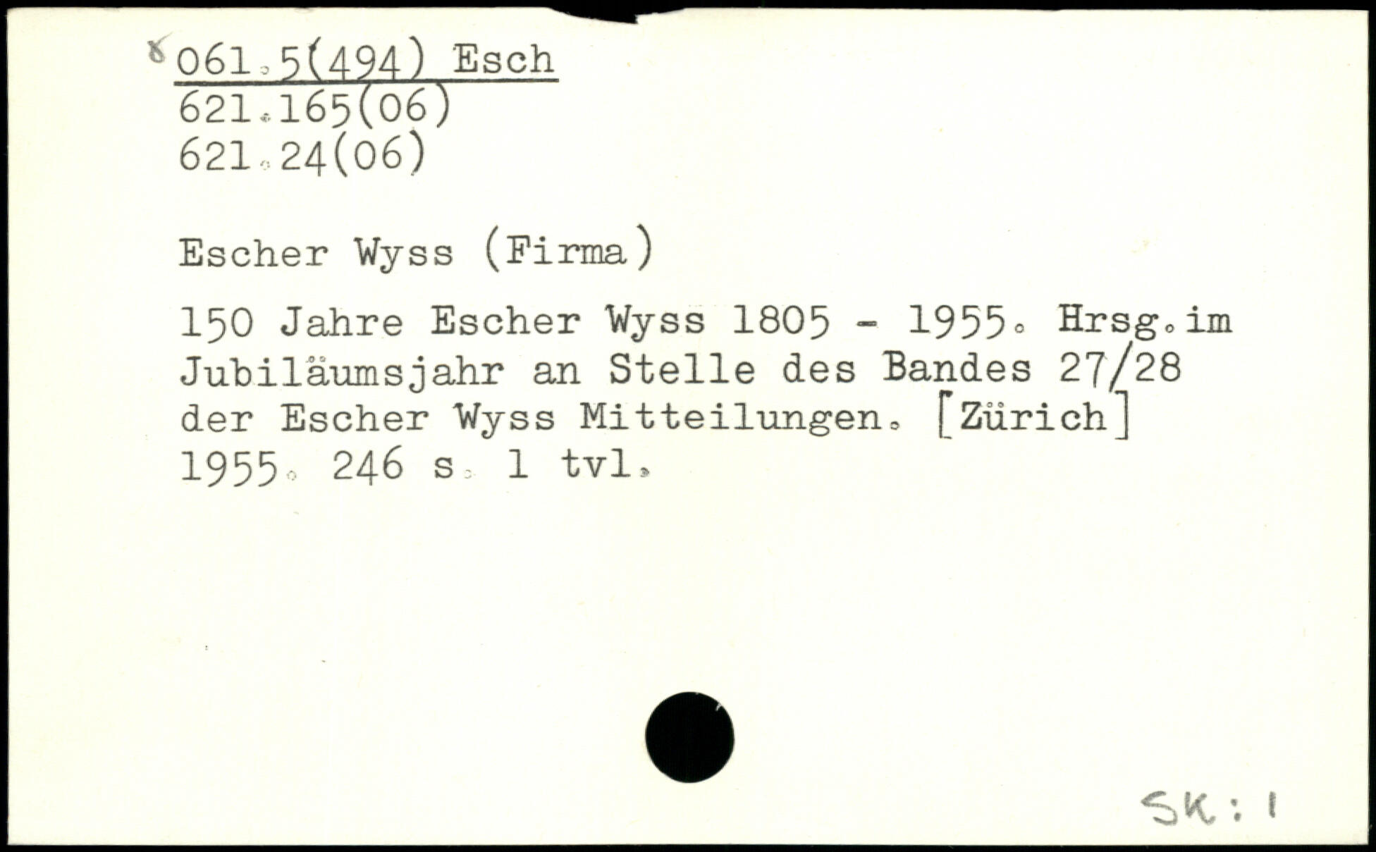 Escher Vyss (Firma) 150 Jahre Escher Wyss 1805 - 1955= Hrsgoim Jubiläumsjahr an Stelle des Bandes 27/28 der Escher Vyss Mitteilungen, [Zürich] 1955