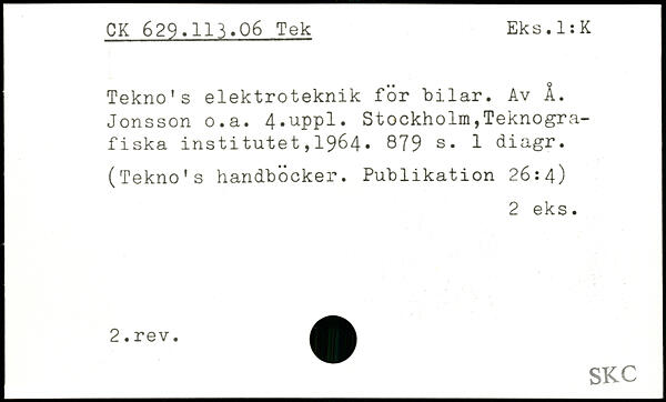 Tekno's elektroteknik för bilar. Av Å. Jonsson o.a.