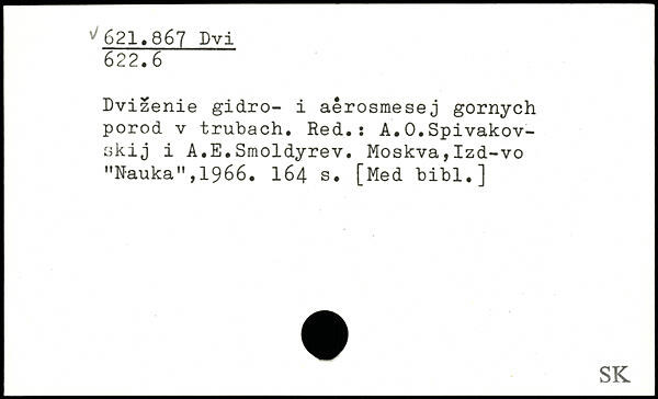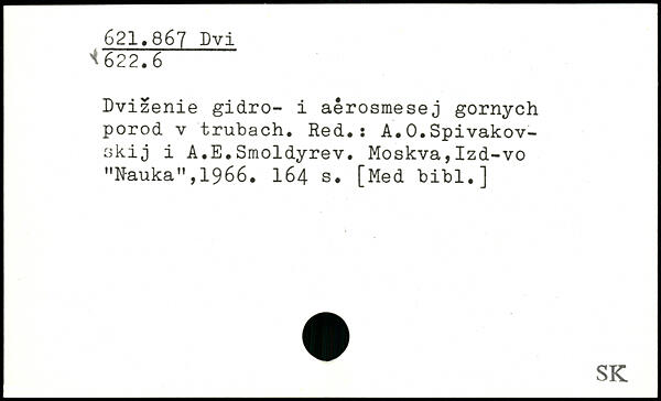 Dvizenie gidro- i aêrosmesej gornych porod v trubach. Red.: A.0.Spivakov-skij i A.E.Smoldyrev. Moskva,Izd-vo "Nauka",1966. I