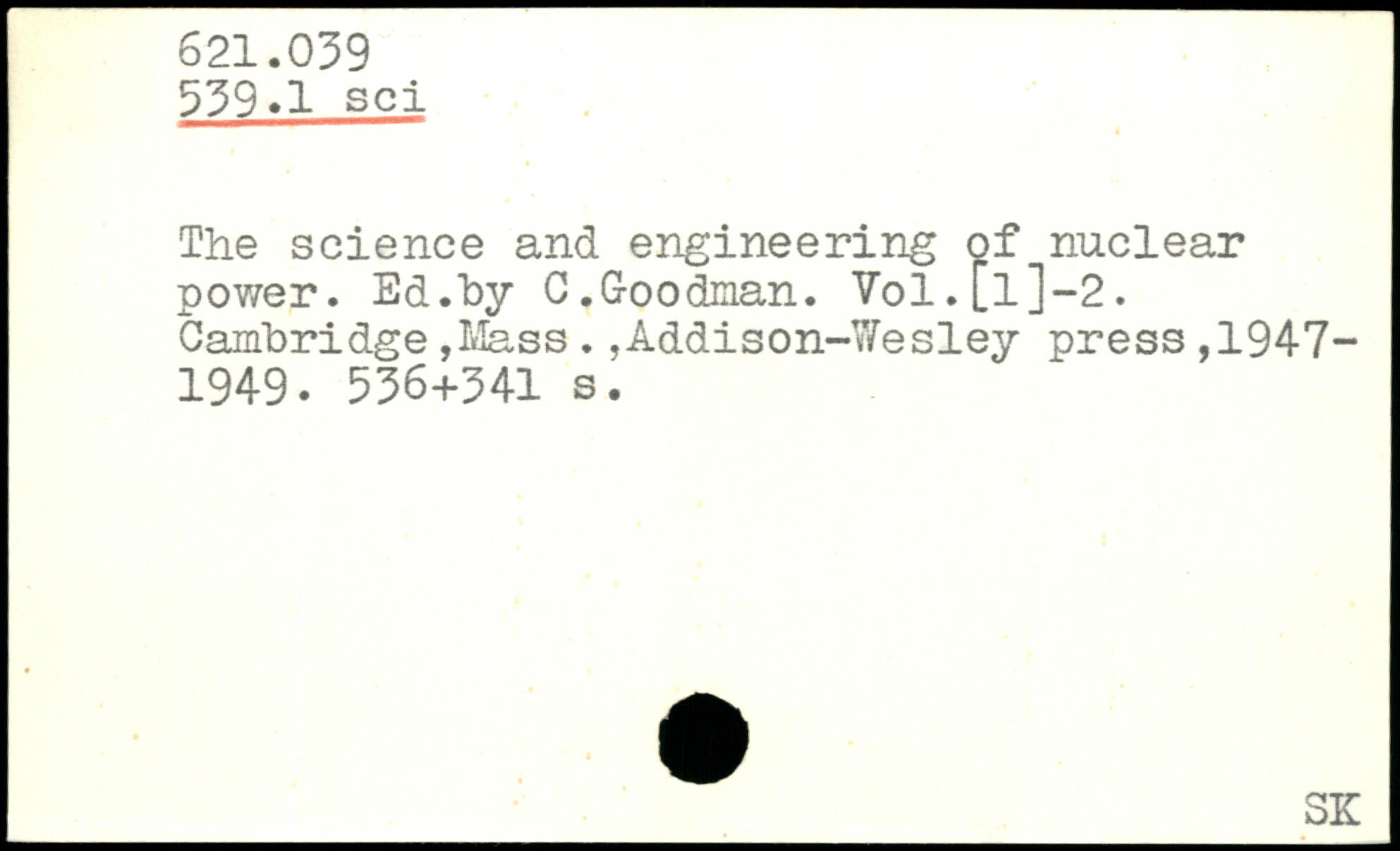The science and engineering of nuclear pov/er. Ed.by G.Goodman. Vol.[l]-2. Cambridge ,Mass. ,Addison-Wesley press ,1947-1949.