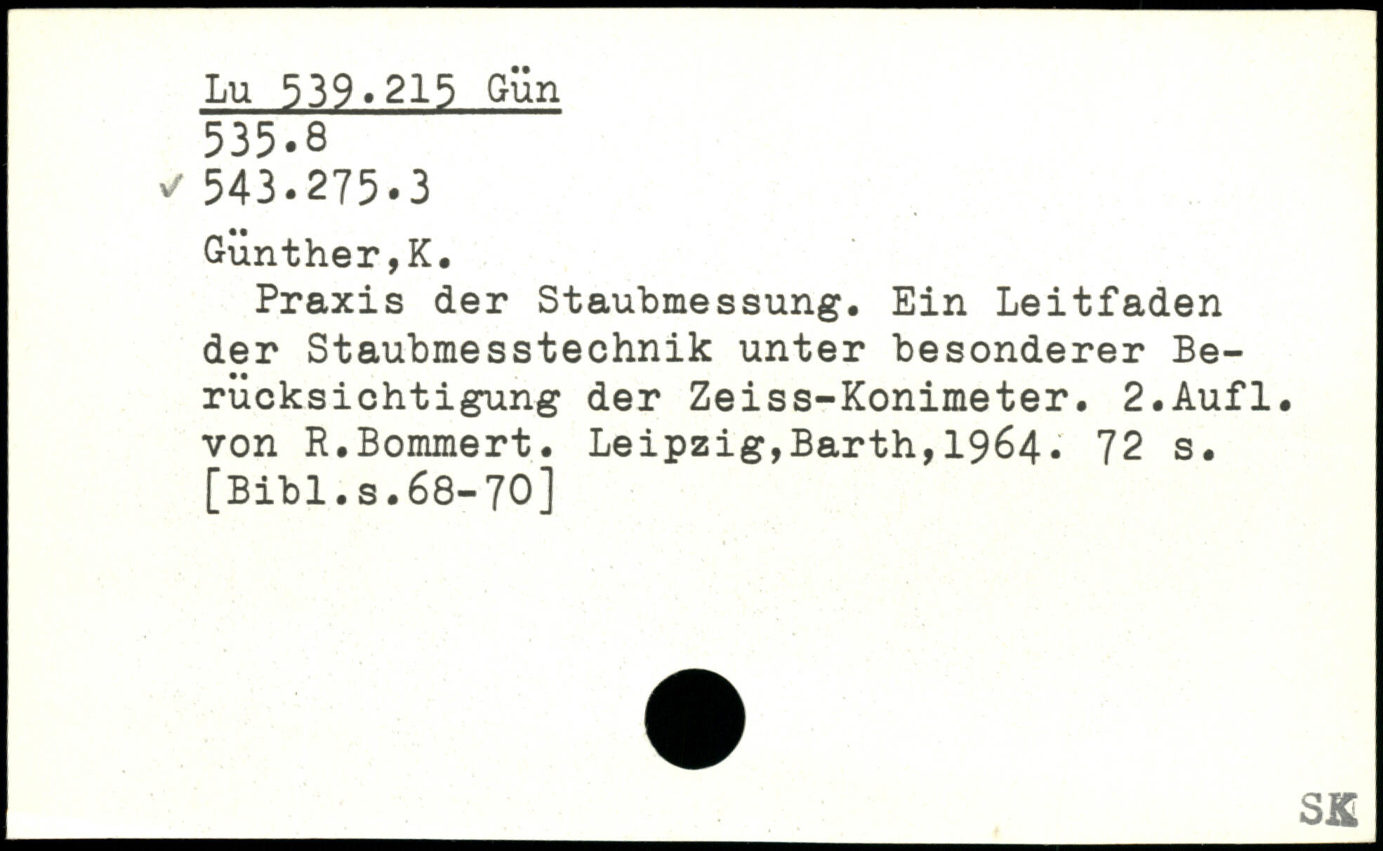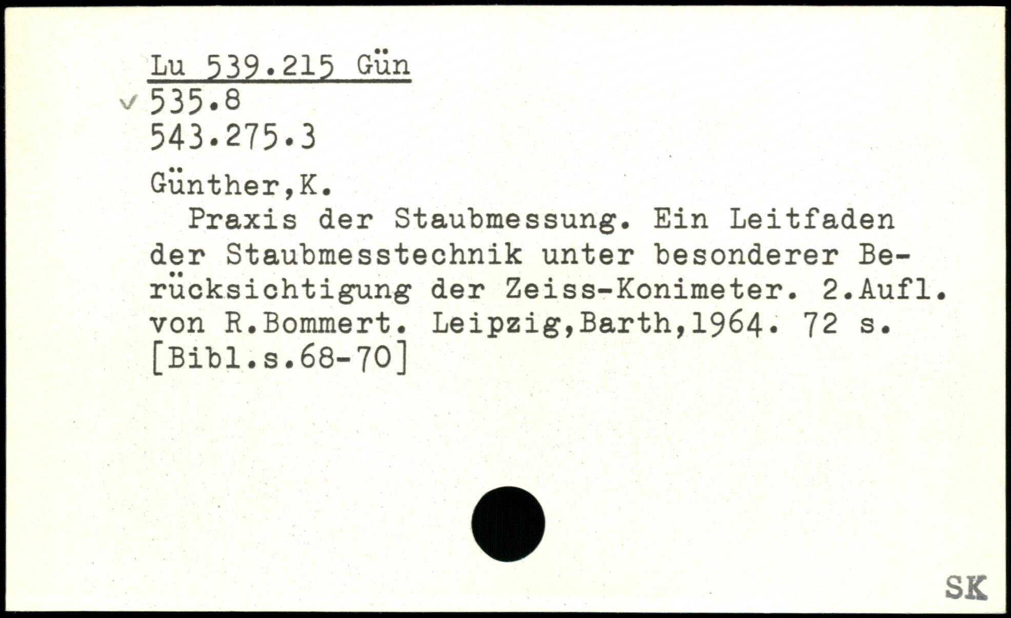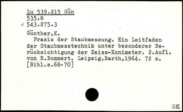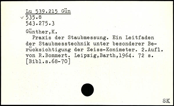 Praxis der Staubmessung. Ein Leitfaden der Staubmesstechnik unter besonderer Berücksichtigung der Zeiss-Konimeter.