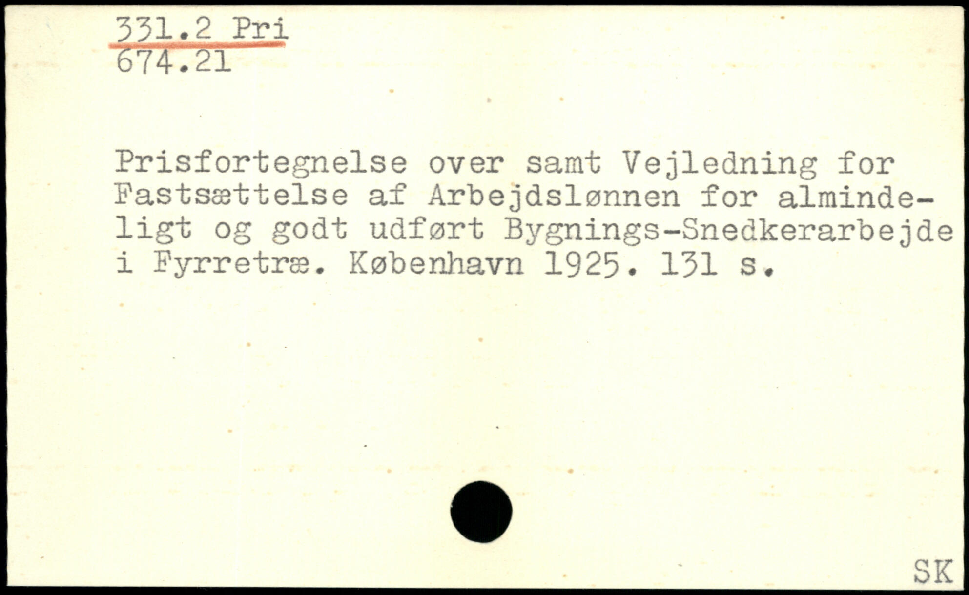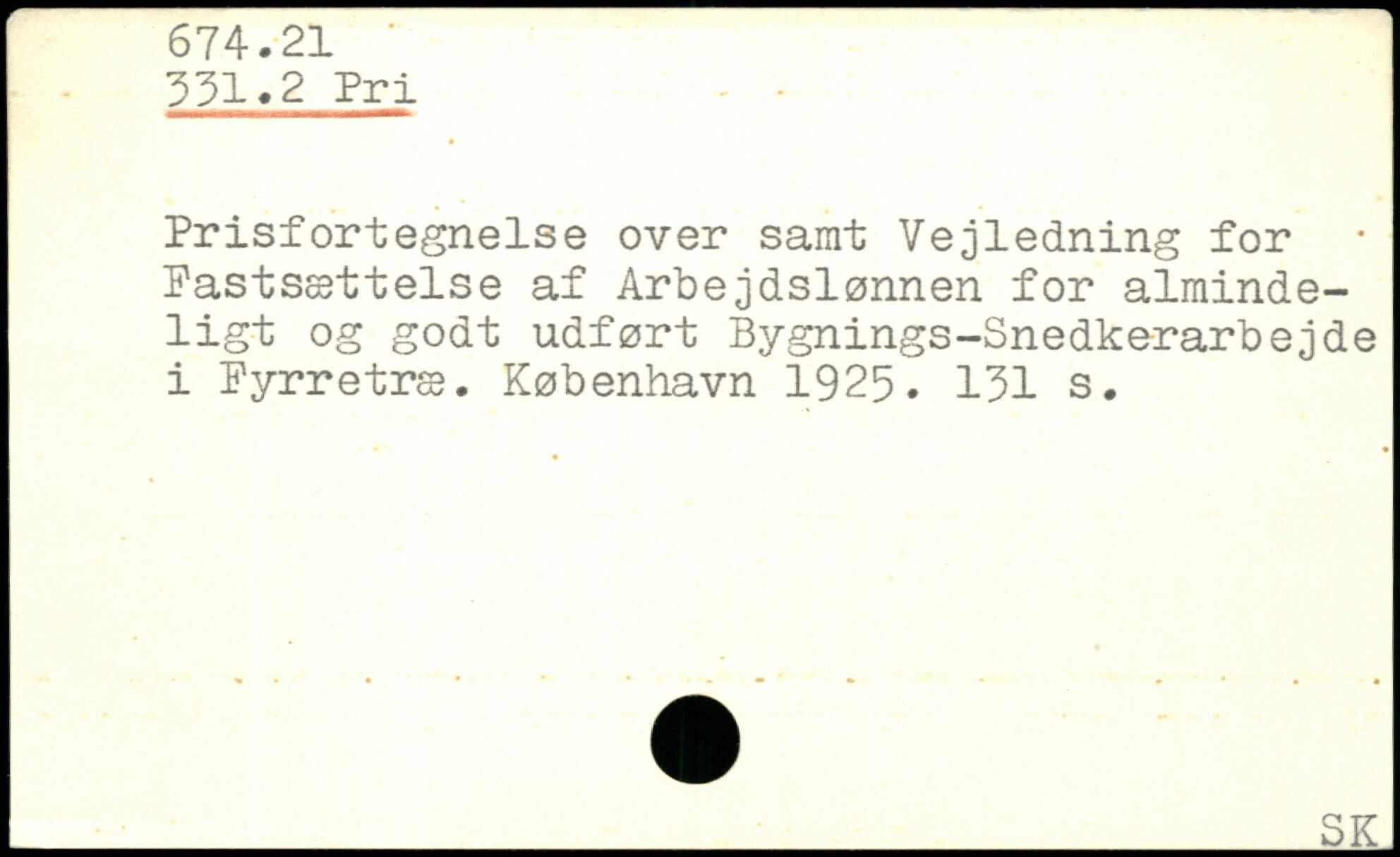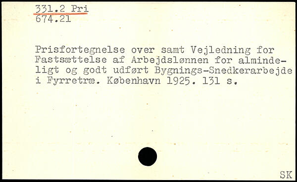 Prisfortegnelse over samt Vejledning for Fastsættelse af Arbejdslønnen for almindeligt og godt udført Bygnings-Snedkerarbejde i Fyrretræ