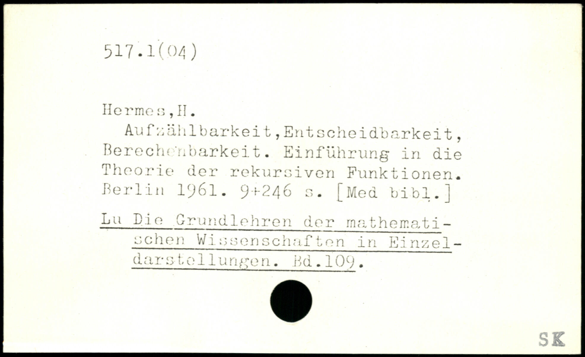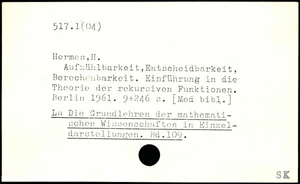 Herme r,, II. AufZählbarkeit,Entseheidbarkeit, Berechenbarkeit. Einführung in die Theorie der rekursiven Funktionen.