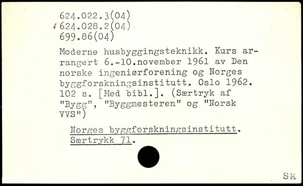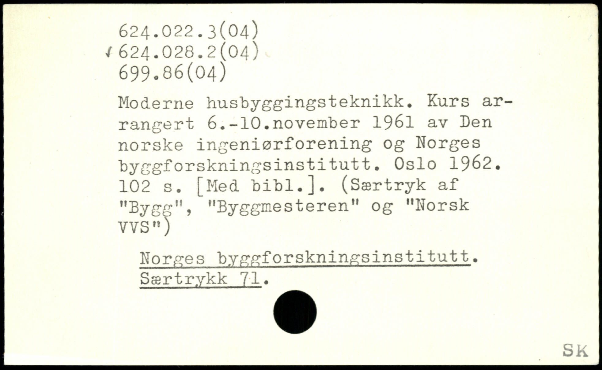 Moderne husbyggingsteknikk. Kurs ar-rangert 6.-10.november 1961 av Den norske ingeniørforening og Norges byggforskningsinstitutt. Oslo 1962.