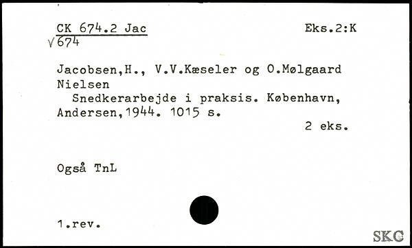 Jacobsen,H., V.V.Kæseler og O.Mølgaard Nielsen Snedkerarbejde i praksis. København, Andersen,19^^.
