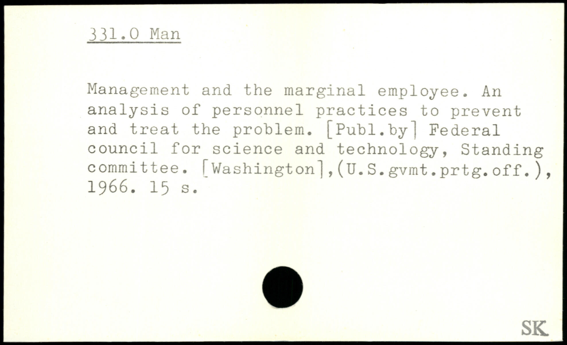 Management and the marginal employee. An analysis of personnel practices to prevent and treat the problem.