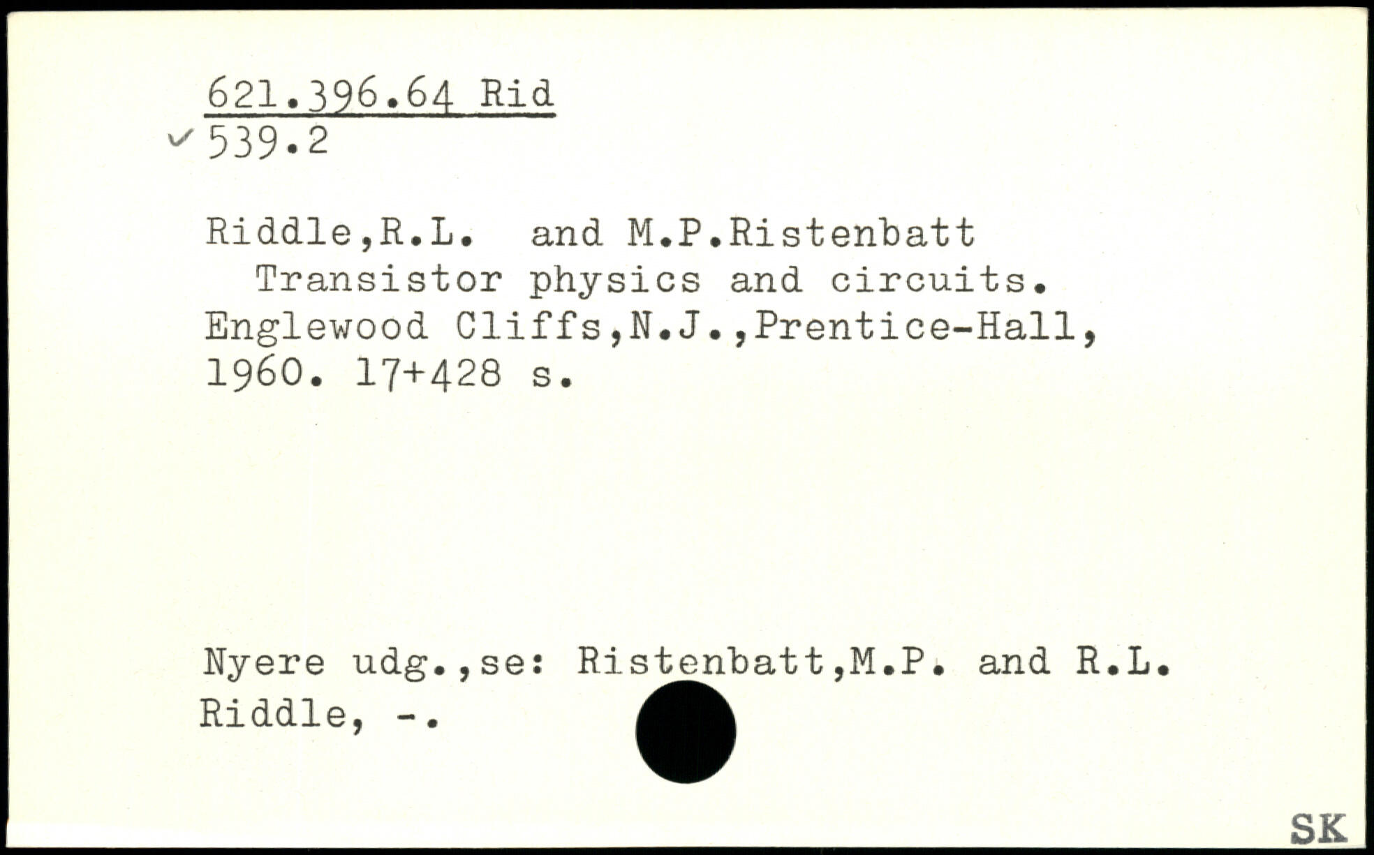 Riddle,R.L. and M.P.Ristenbatt Transistor physics and circuits.